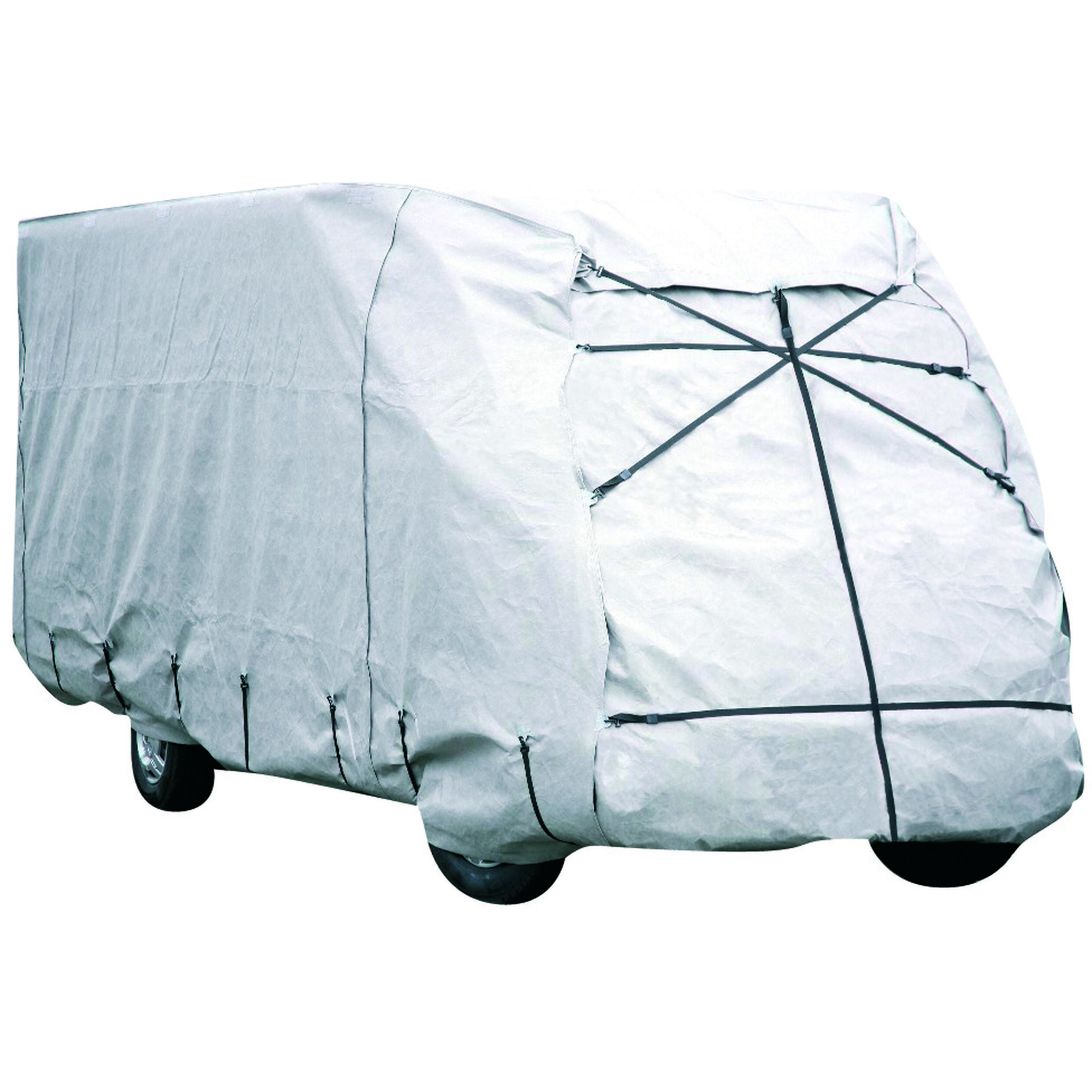 Housse micro-perforée permettant une ventilation totale du véhicule tout en le protégeant des agressions extérieures. Système de sangles et d'oeillets intégrés permettant une fixation sûre, adaptée au véhicule et pour limiter les risques de rayures. Housse équipée de fermetures à glissières au niveau des entrées pour permettre l'accès même pendant l'hivernage.