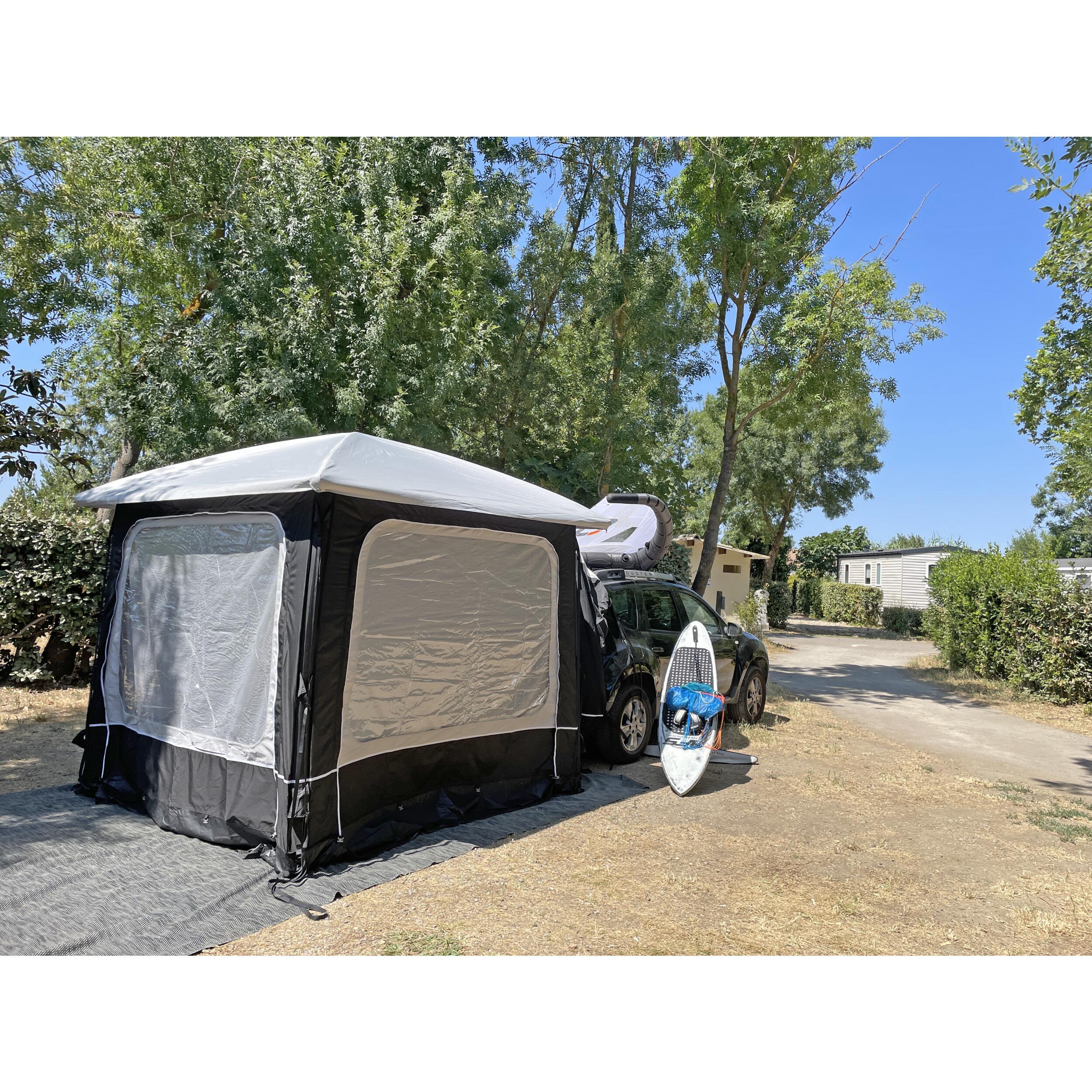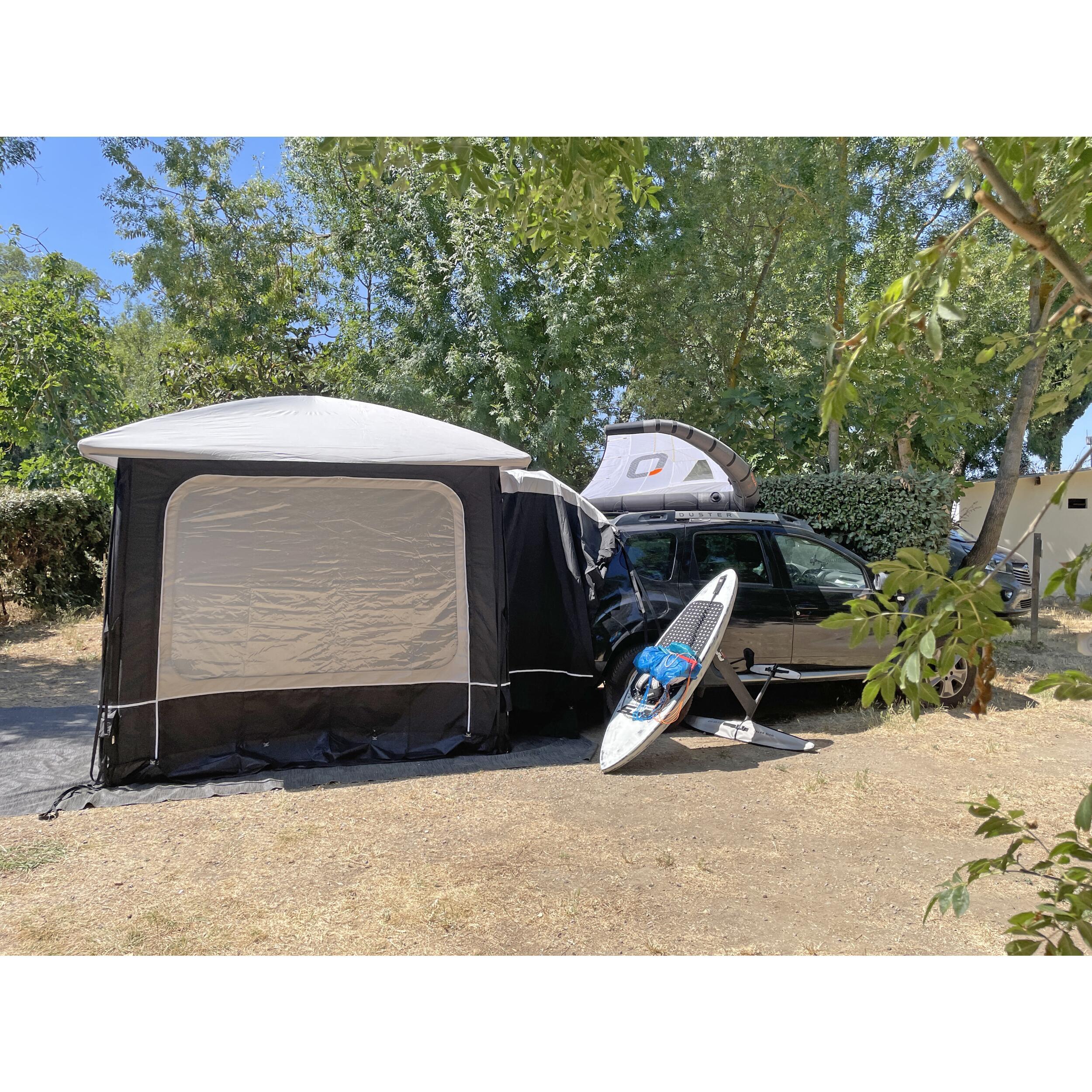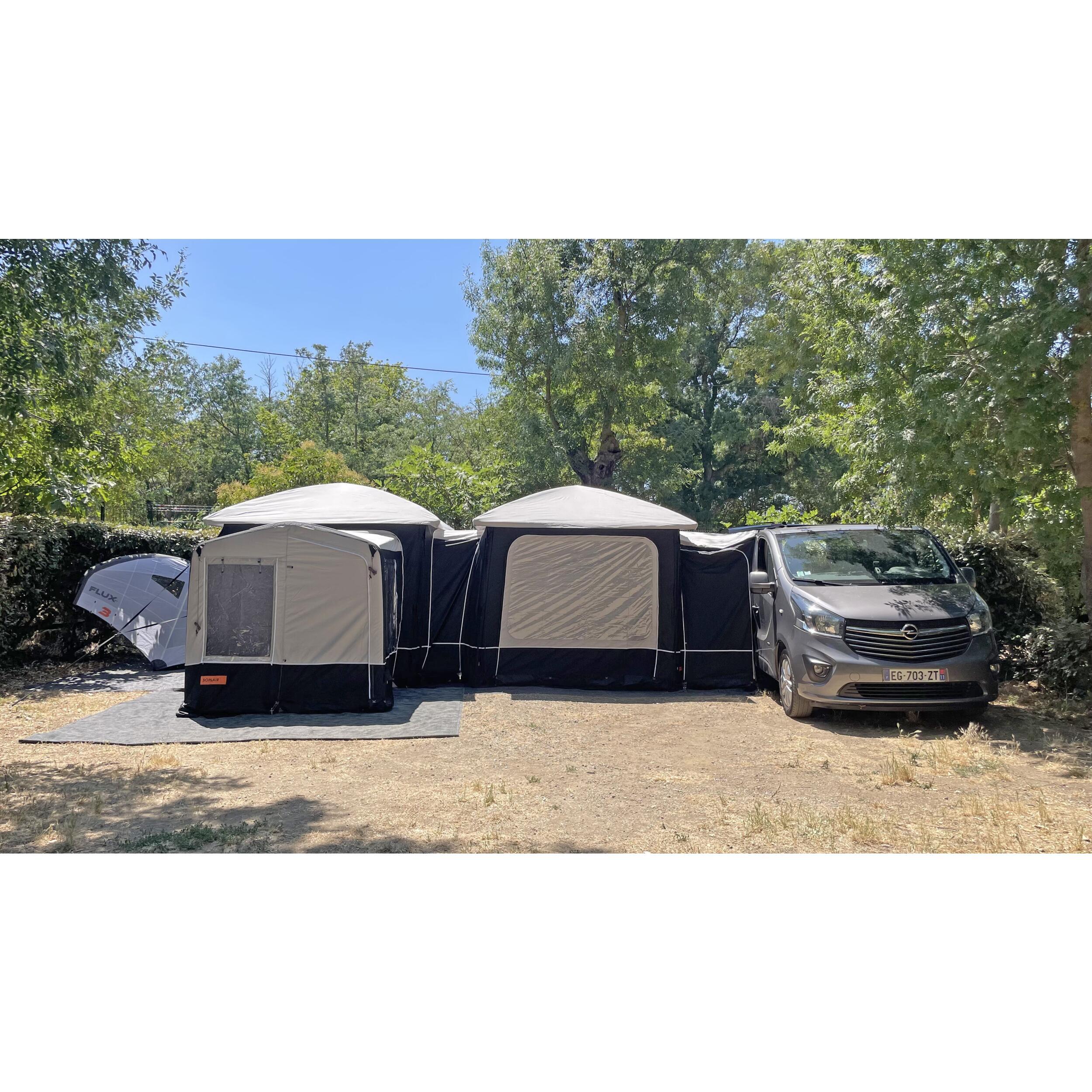 L'abri Lodge Air de la marque Soplair est un espace extérieur ouvert qui s'utilise seul, de manière indépendante. Ainsi, vous pouvez le monter sur votre emplacement de camping et partir avec votre véhicule de loisir en journée. De plus, ilest modulable.
