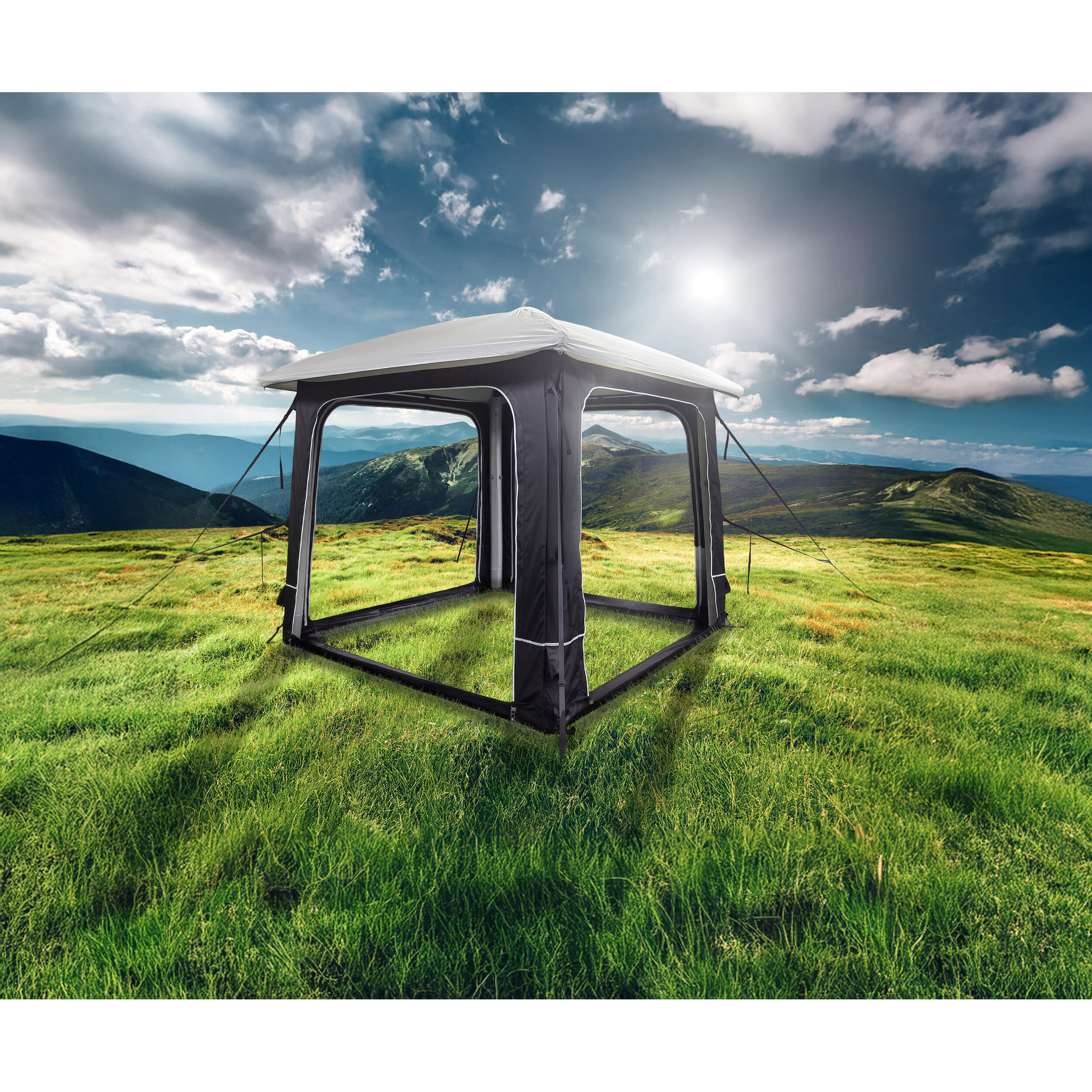 - Connexion entre plusieurs abris : grâce au connecteur en option, vous pouvez relier deux abris Lodge Air pour un espace encore plus grand.