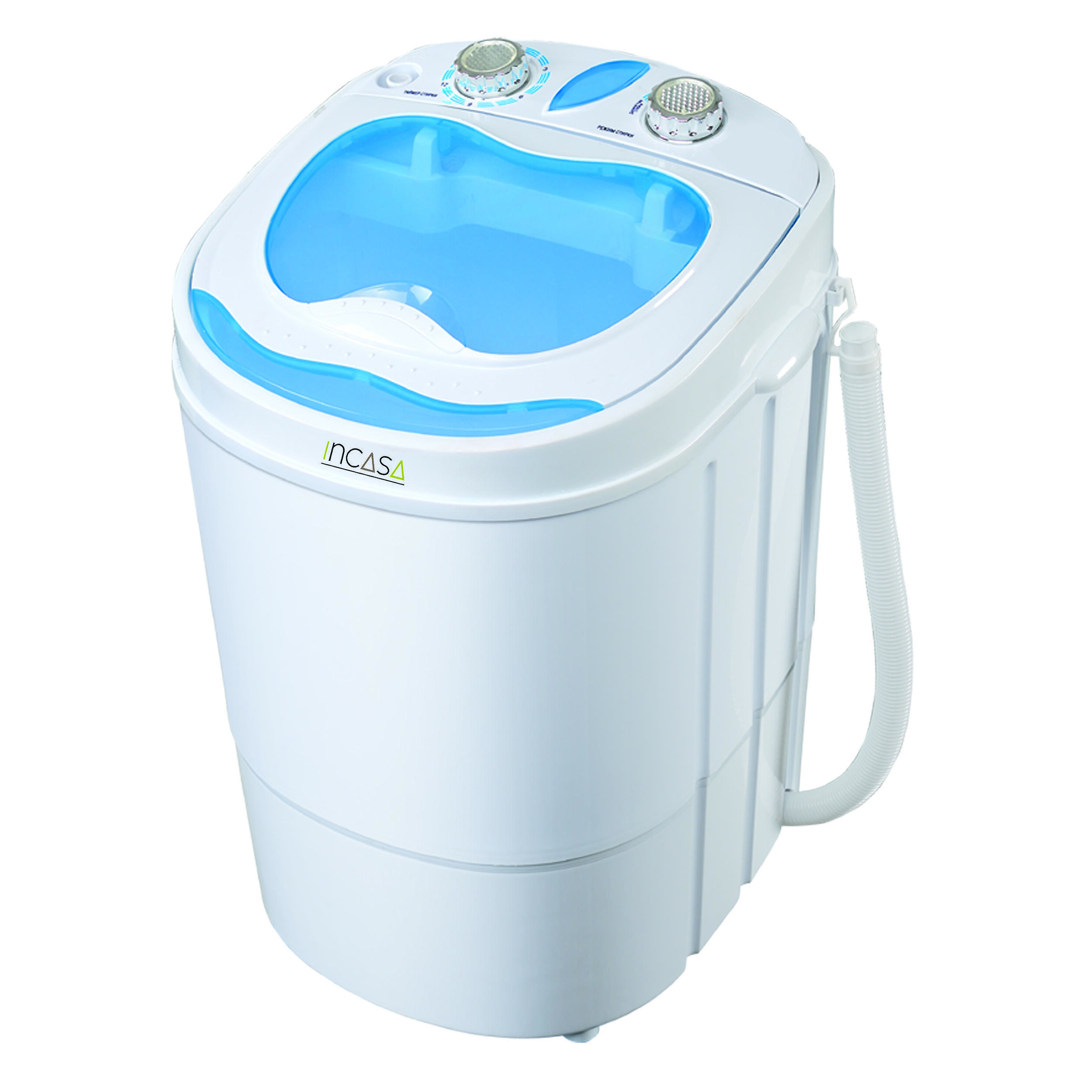 Lavez votre linge en toute autonomie pendant vos voyages grâce à cette mini machine à laver compacte de la marque Incasa, idéale pour les camping-caristes.