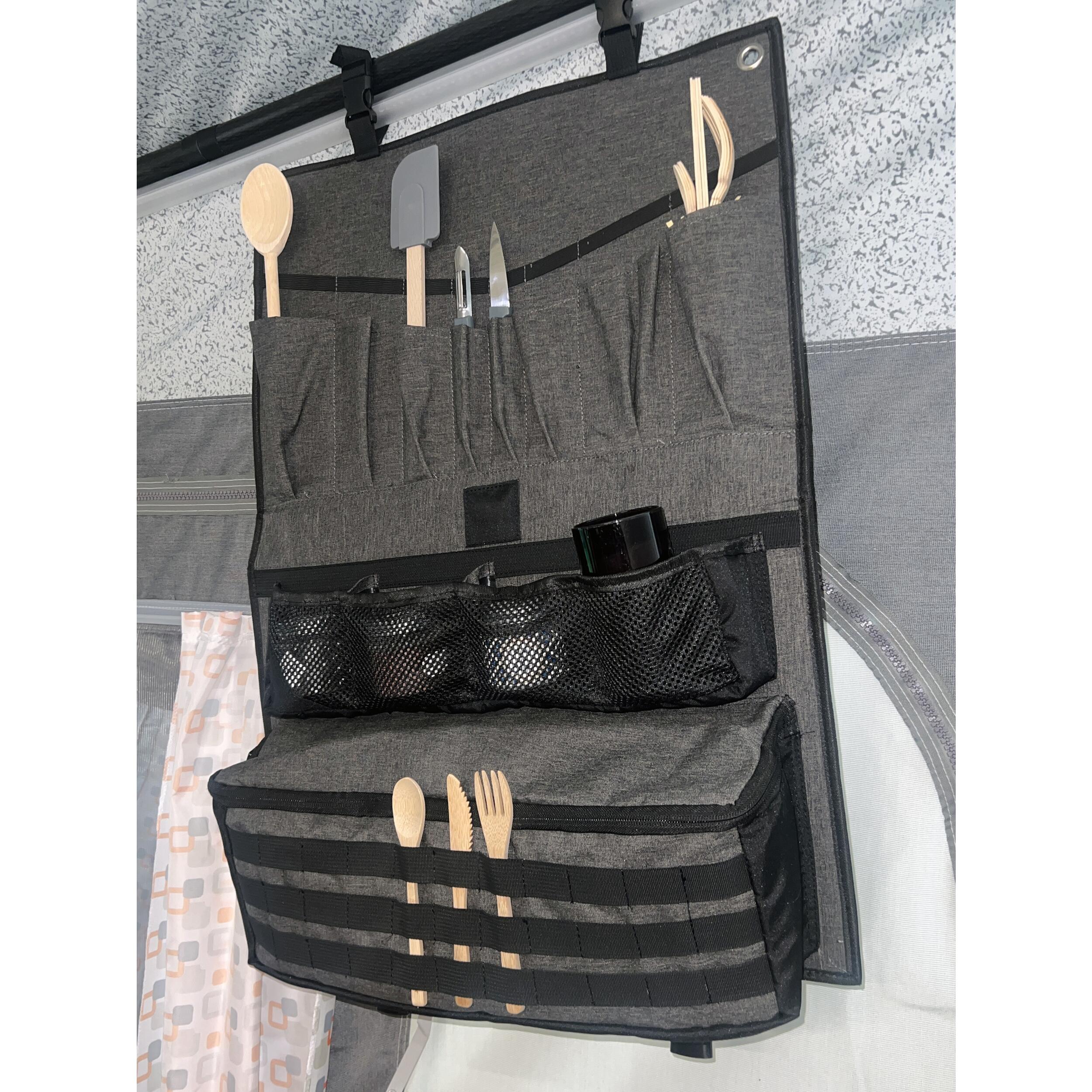 Voyager en camping-car, van ou fourgon aménagé implique de maximiser chaque recoin de votre espace de vie. Le rangement à suspendre Soplair est la solution idéale pour organiser vos affaires sans encombrer vos placards. Ses nombreux compartiments permettent de trier efficacement vos accessoires de camping, produits de toilette ou jouets, tout en gardant le tout à portée de main. Cette conception ingénieuse est pensée pour vous offrir un confort optimal lors de vos aventures.