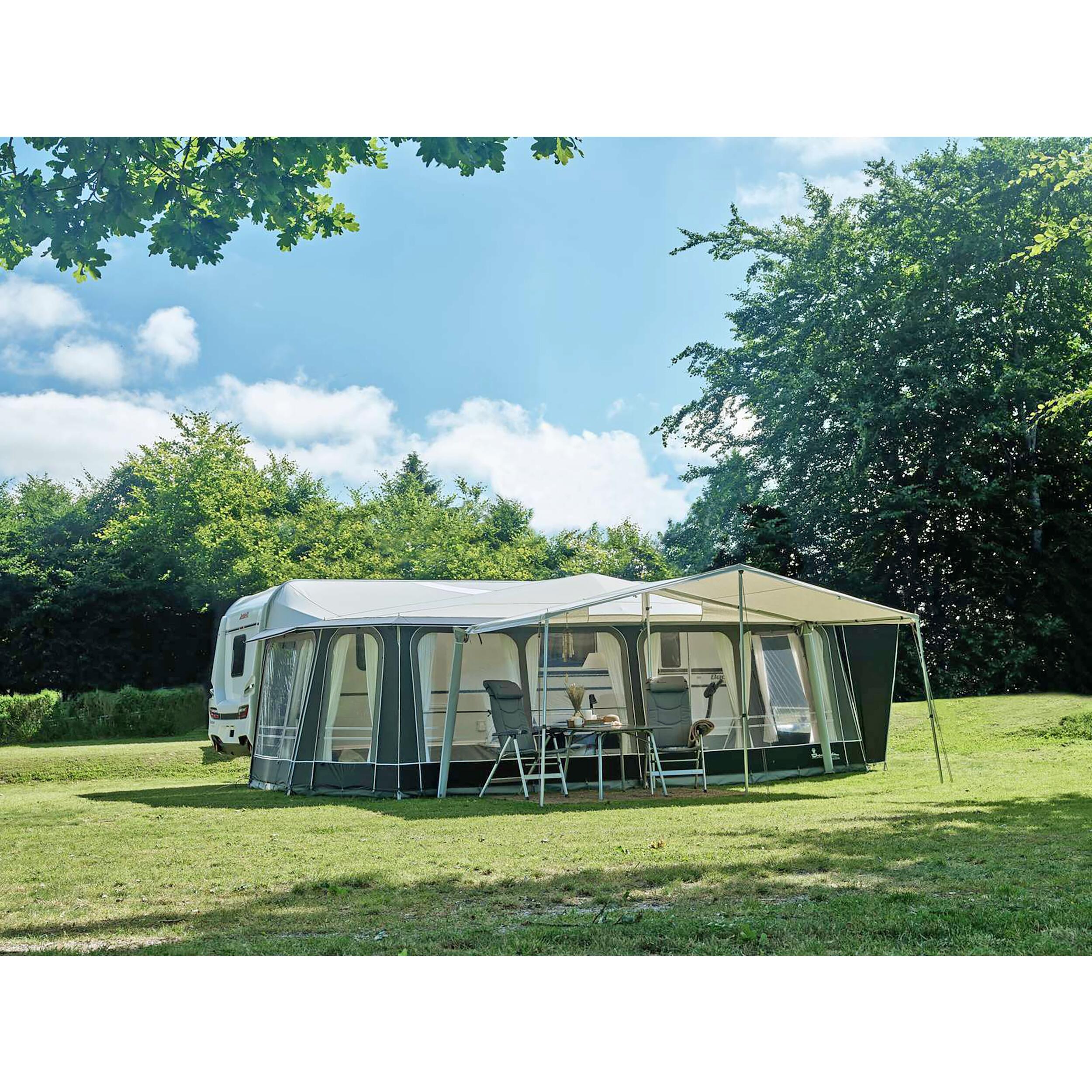 Solette spécialement conçue pour Penta. À la demande de nombreux propriétaires de Penta, nous avons développé une solette adaptée à l’emblématique auvent pentagonal Penta. La solette est construite avec une armature Mega et des angles soudés, ce qui la rend très solide et adaptée aux sédentaires Penta.La construction de la solette en forme de panneau arrière supérieur est unique. Cela assure une bonne hauteur de solette, même si celle-ci est montée sur l’auvent Penta sous la casquette. Pour créer une bonne luminosité sous la solette, le panneau arrière est doté de deux fenêtres en hauteur. La solette Penta est dotée d’une gouttière spéciale en PVC, ce qui vous permet de relier la solette et l’auvent sans avoir de problèmes avec l’eau de pluie. Les tuyaux de descente des eaux de pluie spécialement conçus acheminent l’eau loin de la gouttière et loin de la solette, des deux côtés. En termes de design, la solette a été créée pour s’harmoniser parfaitement avec l’auvent Penta, puisque le même matériau de toit est utilisé pour la solette et l’auvent. Disponible dans une taille qui s’adapte parfaitement aux auvents Penta de taille G19, mais peut également être utilisée sur des tailles G plus grandes. Gouttière en PVC avec suspension par crochets pour une bonne évacuation des eaux de pluie.