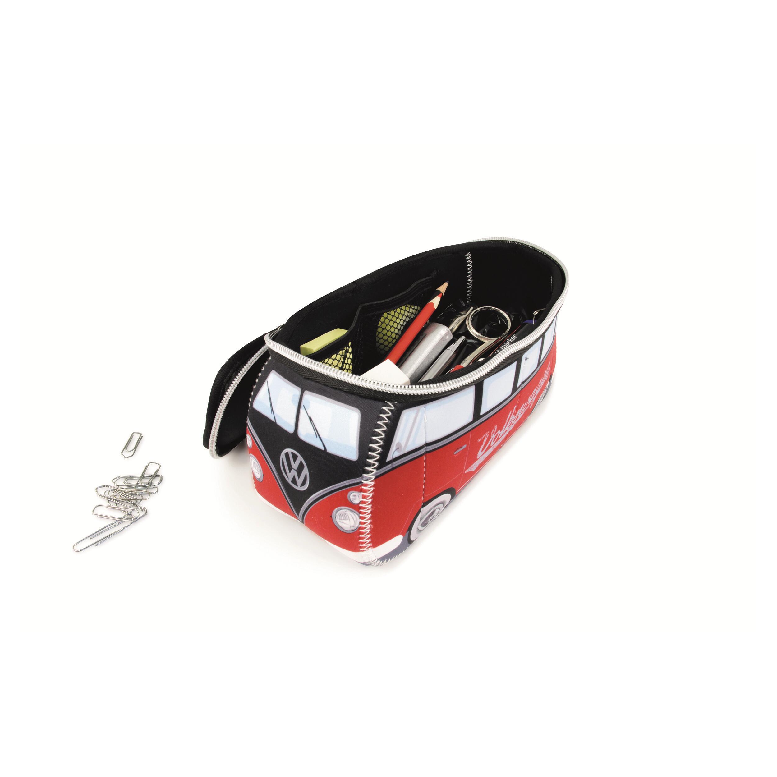 Cette trousse polyvalente en néoprène unique en son genre reprend la forme du légendaire bus VW T1. Son design rouge et noir avec le logo Volkswagen vintage attire tous les regards ! Parfait pour les fournitures scolaires ou de bureau, les cosmétiques, les petits outils et bien d'autres choses encore, ce sac peut tout transporter. Des détails spéciaux comme les poches intérieures en filet, la poignée de transport de la planche de surf et les fermetures éclair du mini T1 Bus rendent ce sac aussi élégant que pratique pour les étudiants, les artistes, les parents et les enfants !