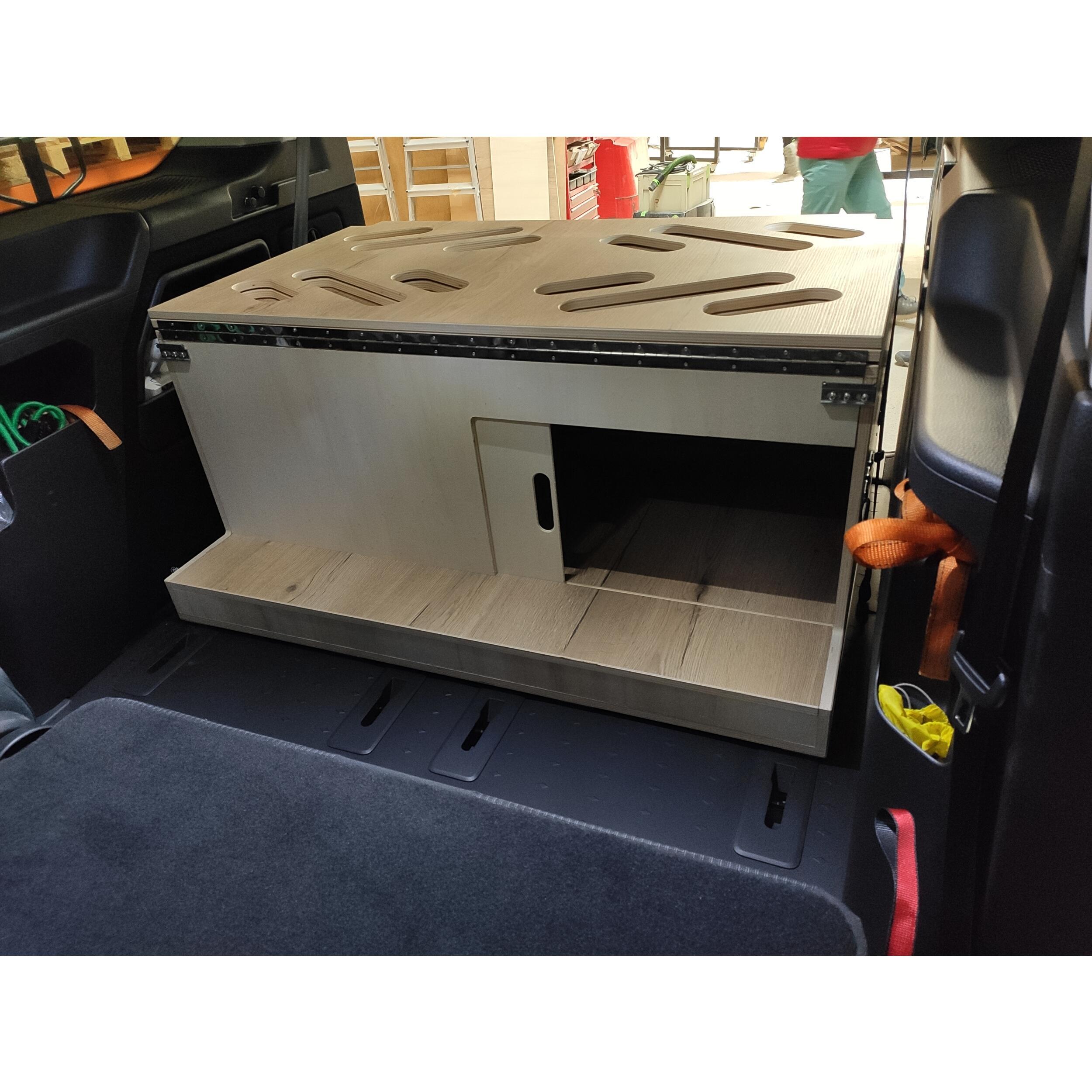 1 trappe coulissante (50x34 cm) à l'arriére du caisson permet de comuniquer aux places arriéres