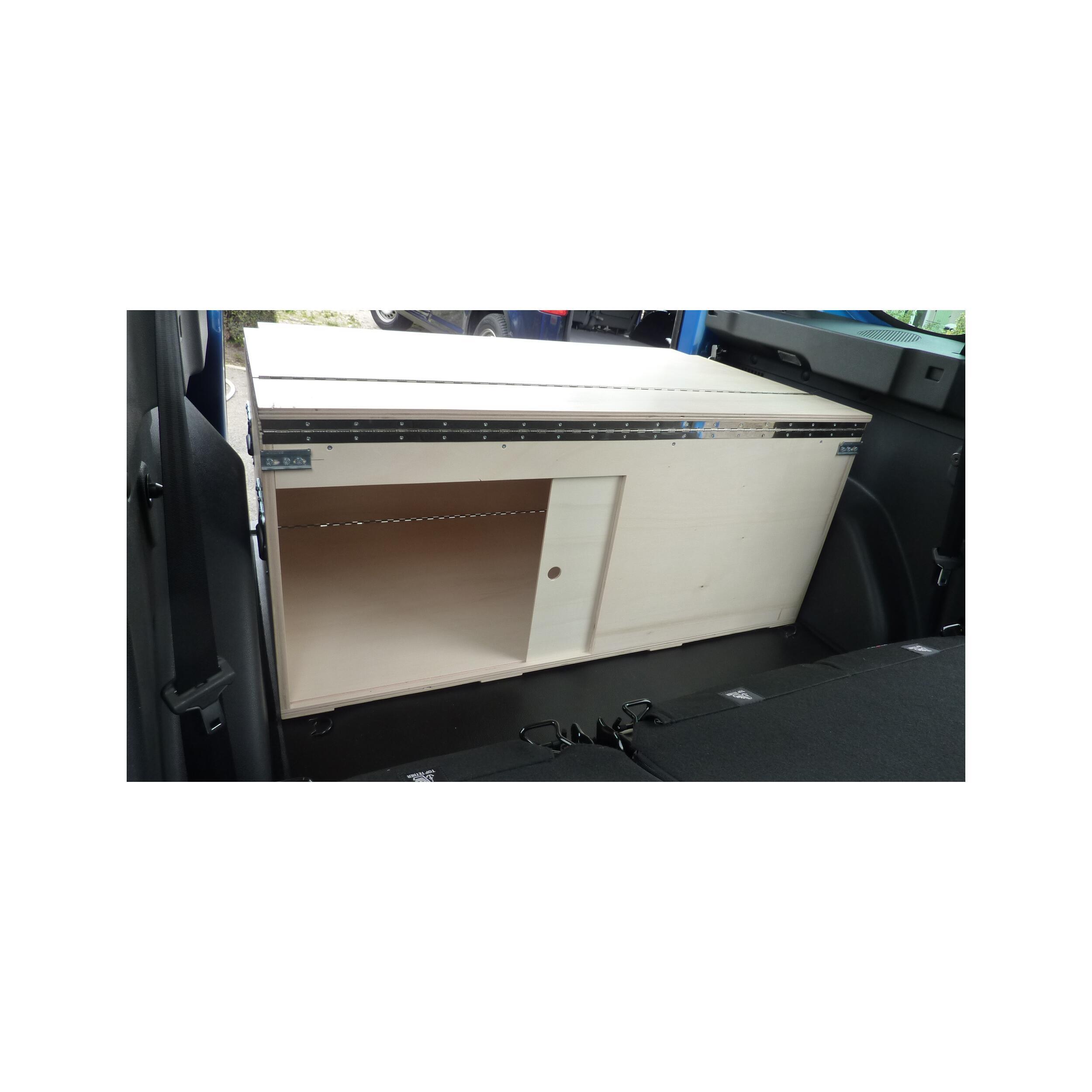 Une trappe coulissante (50x34 cm) à l'arriére du caisson permet de comuniquer aux places arriéres