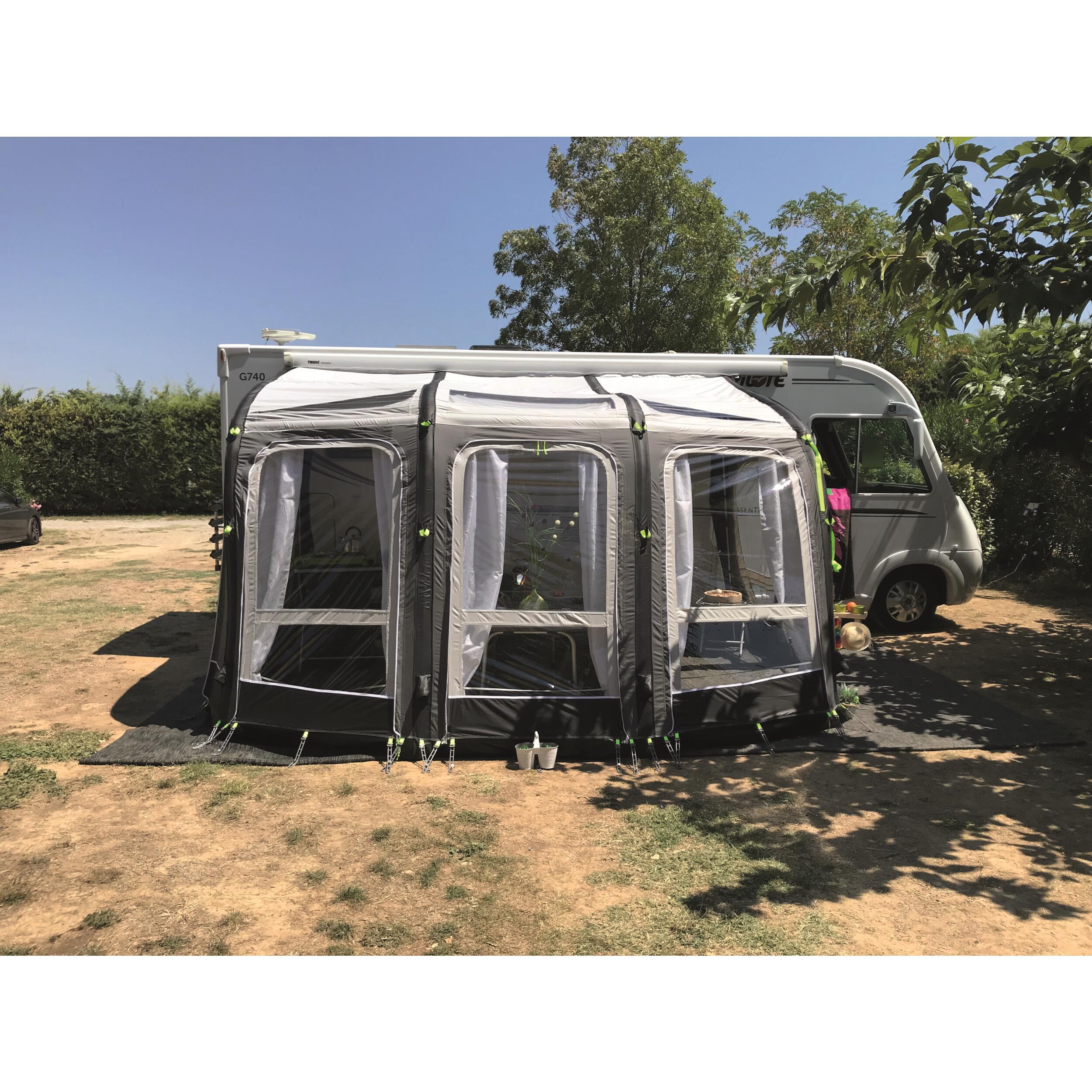 L'auvent Pampeo est un auvent gonflable haut de gamme pour Camping-car. Ses dimensions vous offrent un espace de vie supplémentaire de 12 m2 que vous pourrez agrandir en rajoutant une pièce annexe sur l'un ou l'autre des côtés.