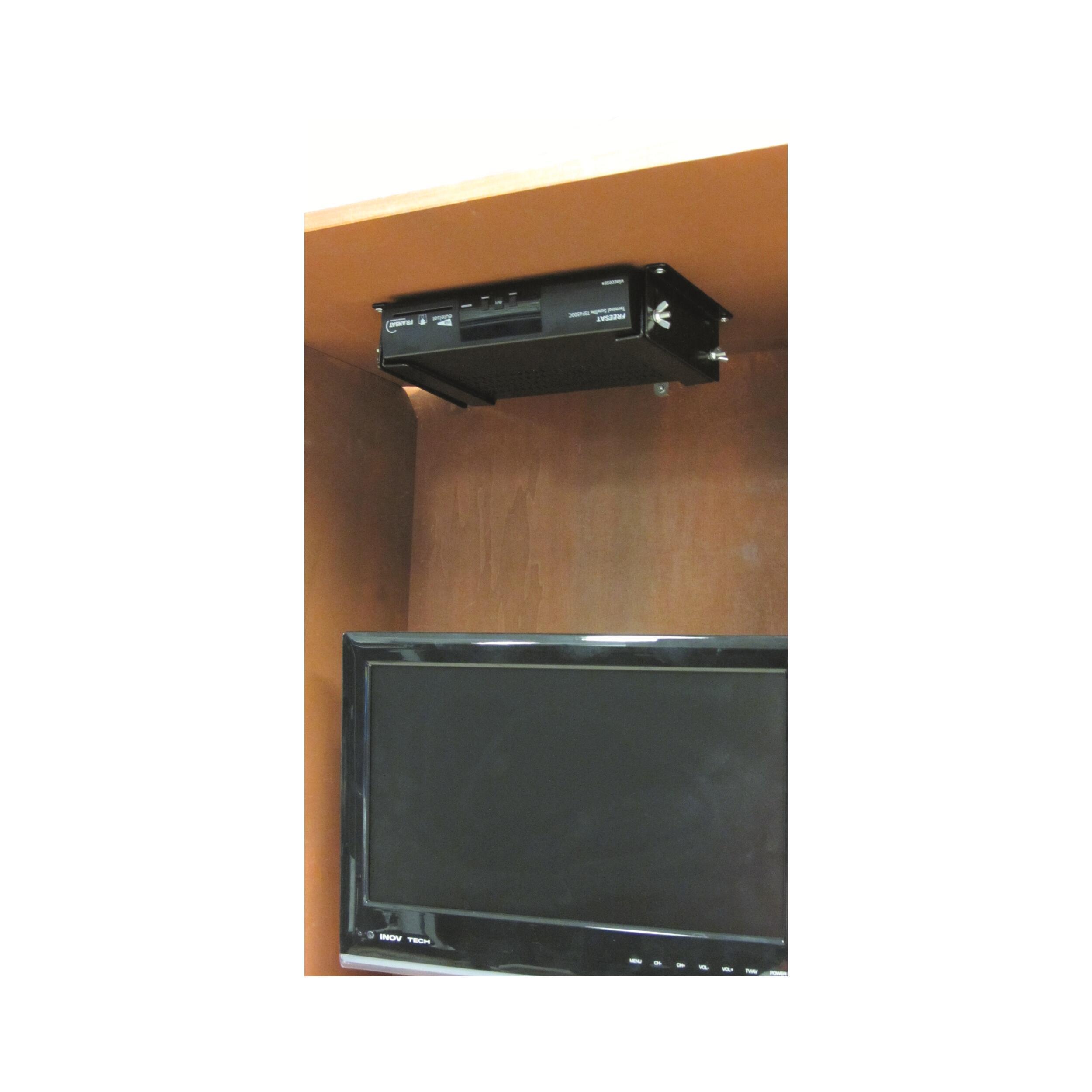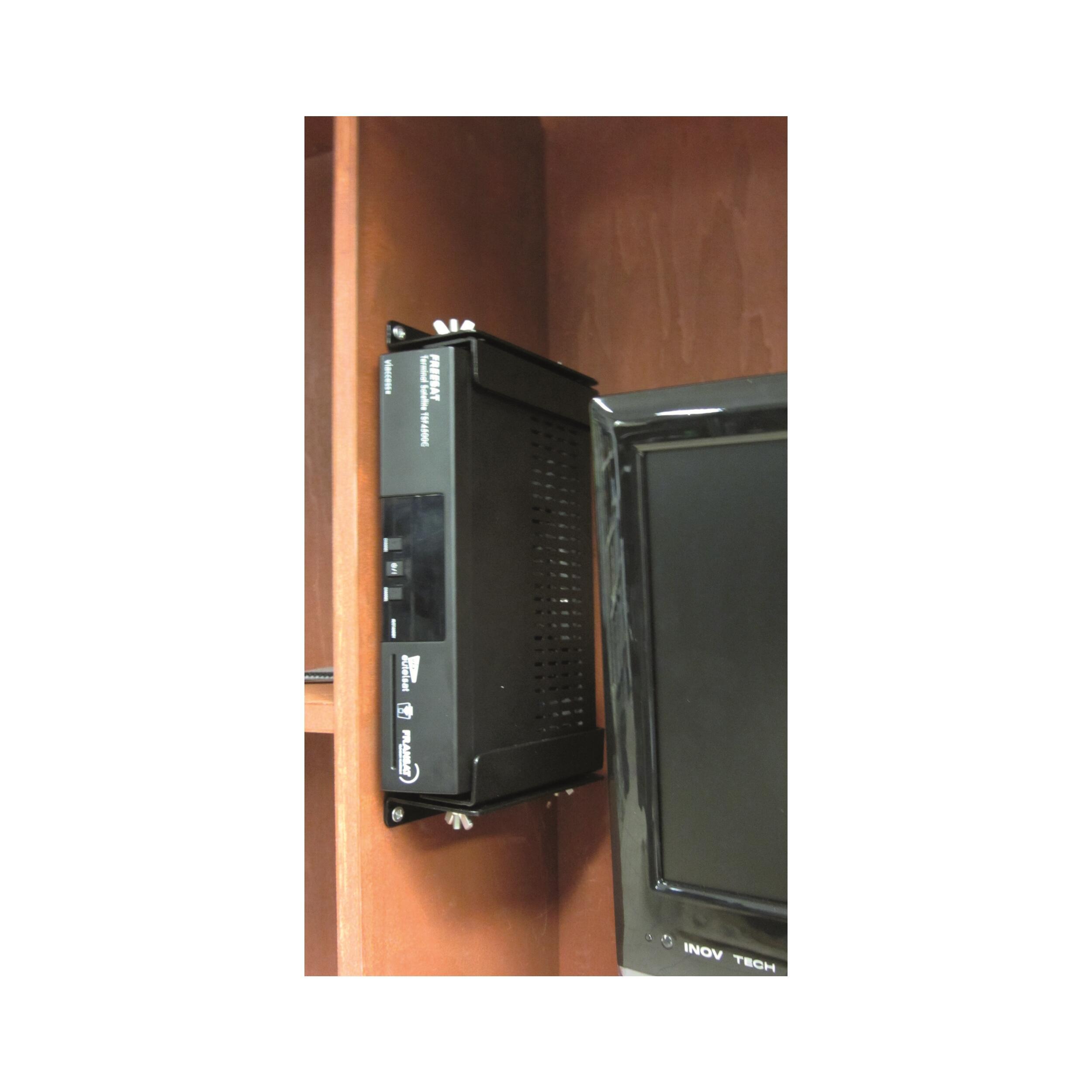 Support pour démodulateur compatible avec tous véhicules de loisirs. En applique ou en suspension, ce support accueil votre démodulateur sur/sous une tablette ou contre une paroi. Il est étudié pour garantir un accès facile de la connectique arrière sans boucher les orifices de ventilation. Système anti-vibrations : l'appareil ne glisse pas et reste silencieux pendant tout le trajet.