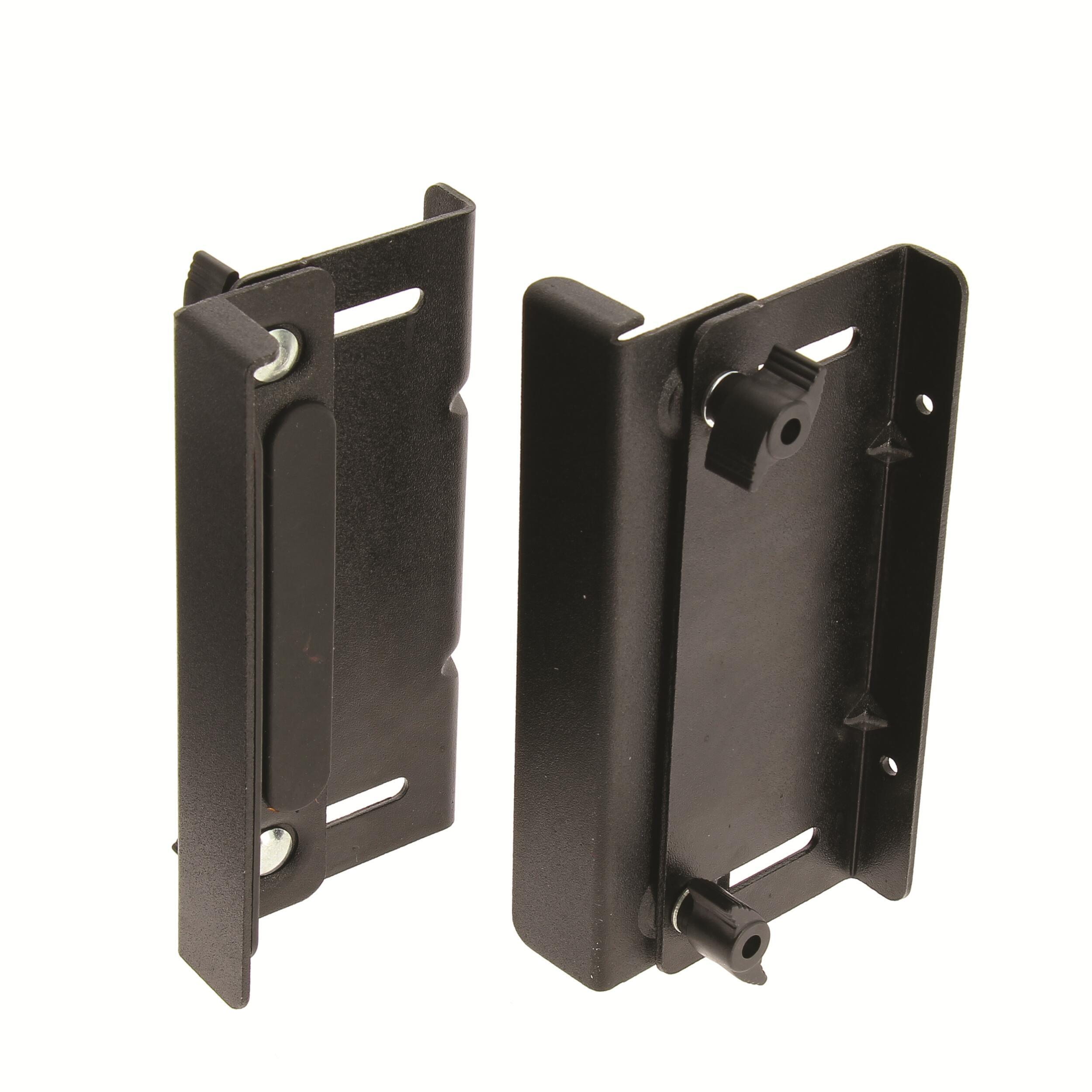 Avec 2 systèmes d'équerres réglables coulissantes et un kit de visserie.