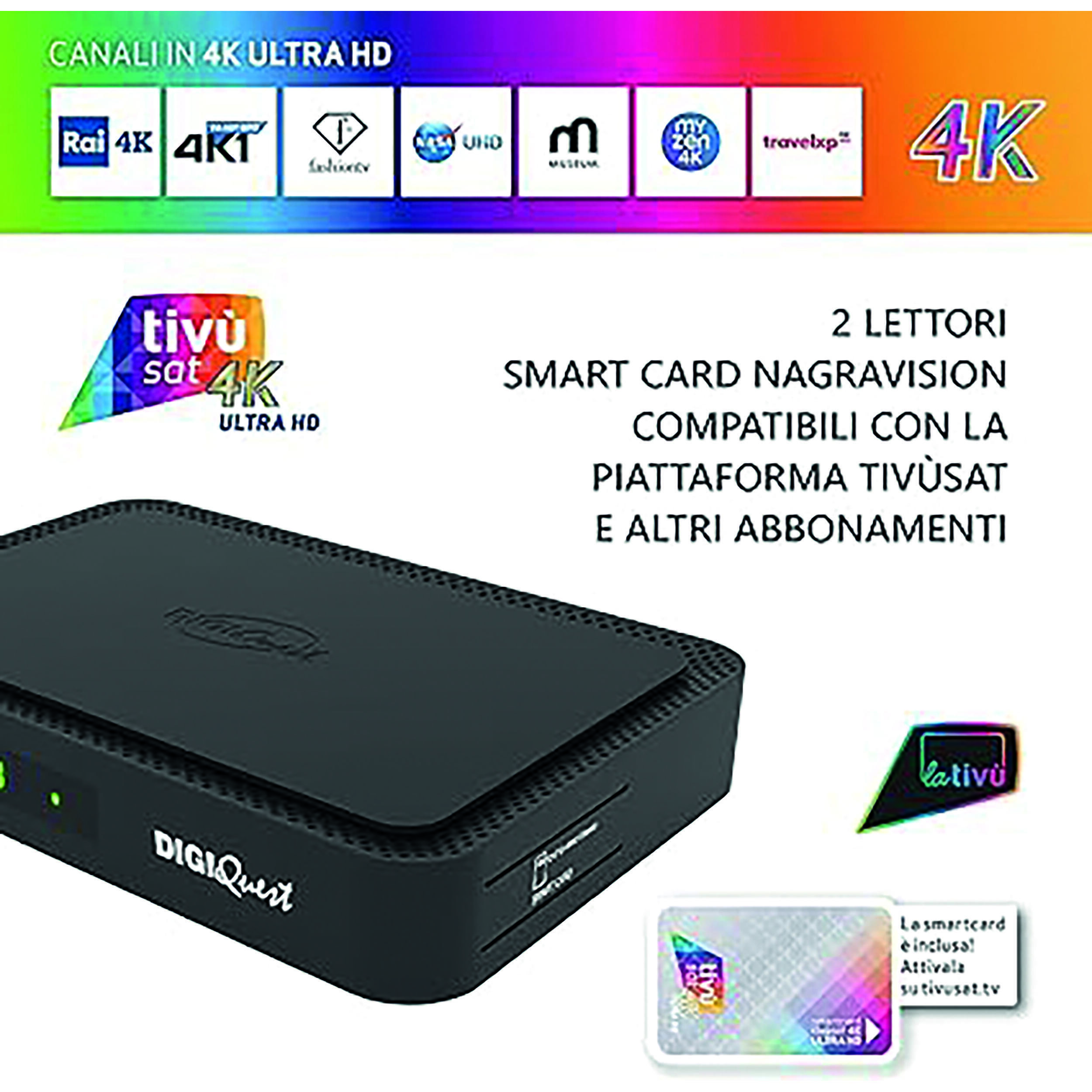 La carte tivùsat est bien incluse, mais elle doit être activée via un centre d'appels ou sur le site www.tivusat.tv avant utilisation.