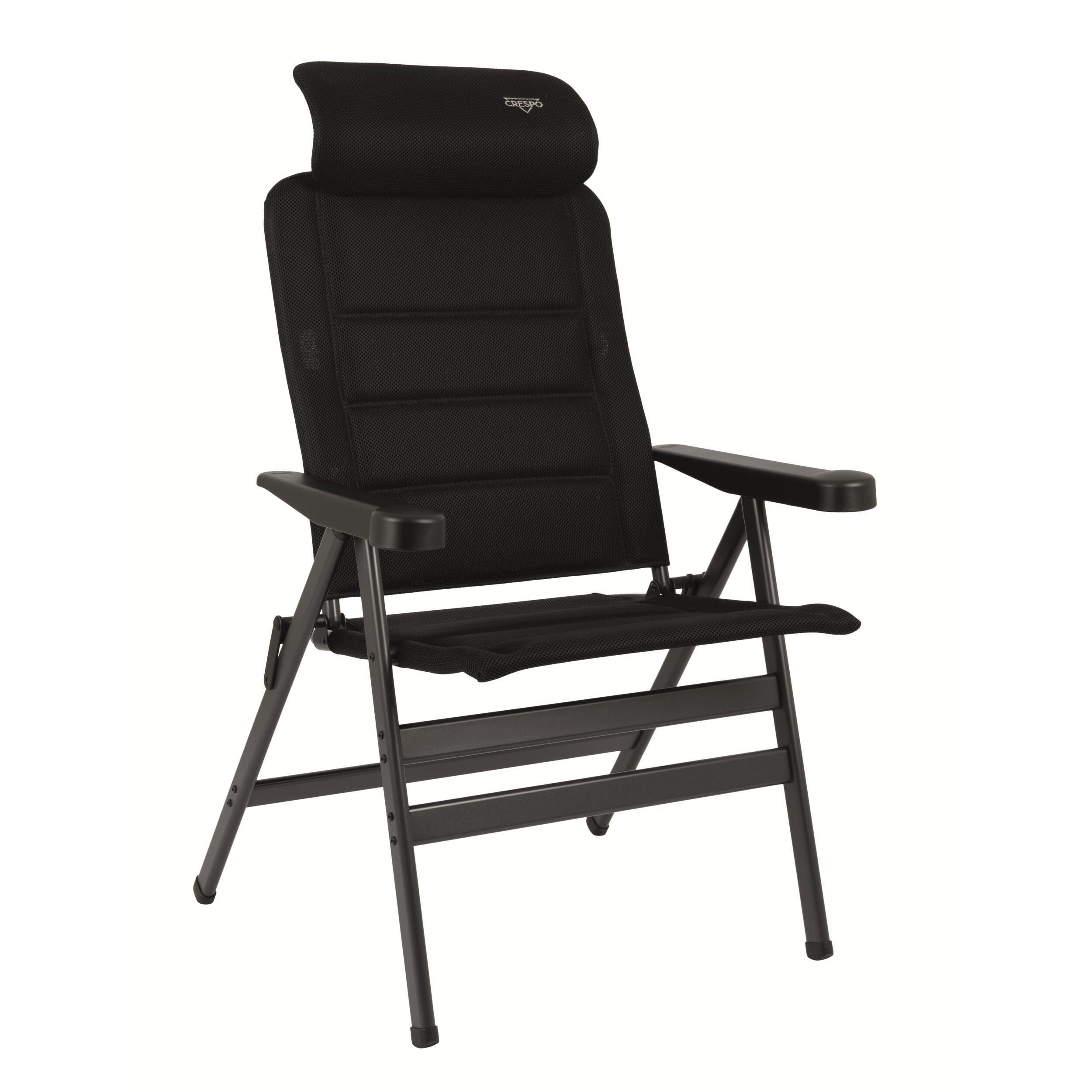 Fauteuil de camping pliant Crespo, doté d’un dossier haut et d’un appui-tête réglable pour un confort exceptionnel en extérieur.