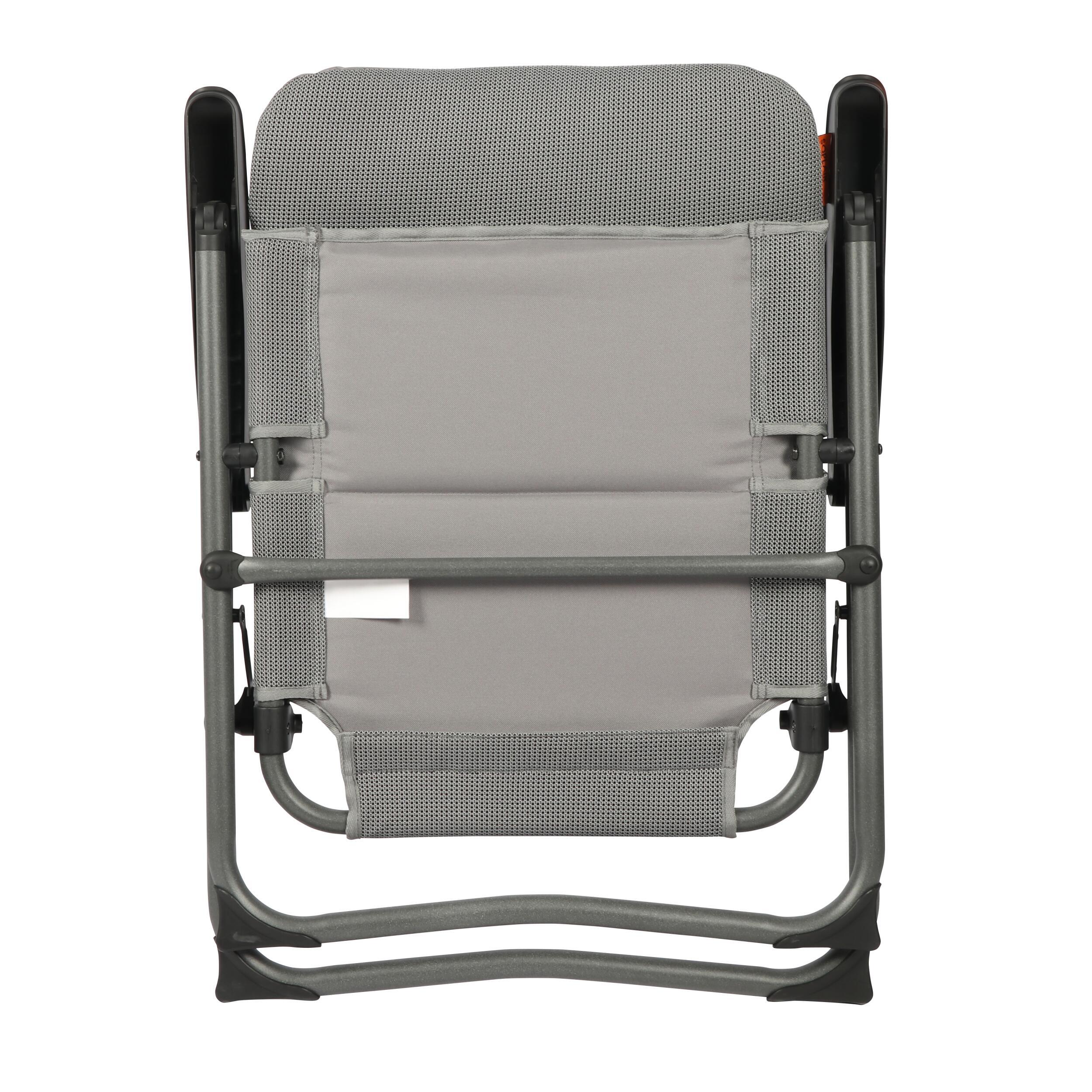 Mais la compacité ne serait rien sans la légèreté. Avec une structure en aluminium, le fauteuil se transporte facilement, sans alourdir vos déplacements. En quelques secondes, il se déplie et se replie, ce qui en fait un accessoire indispensable pour les pauses rapides comme pour les longues haltes.