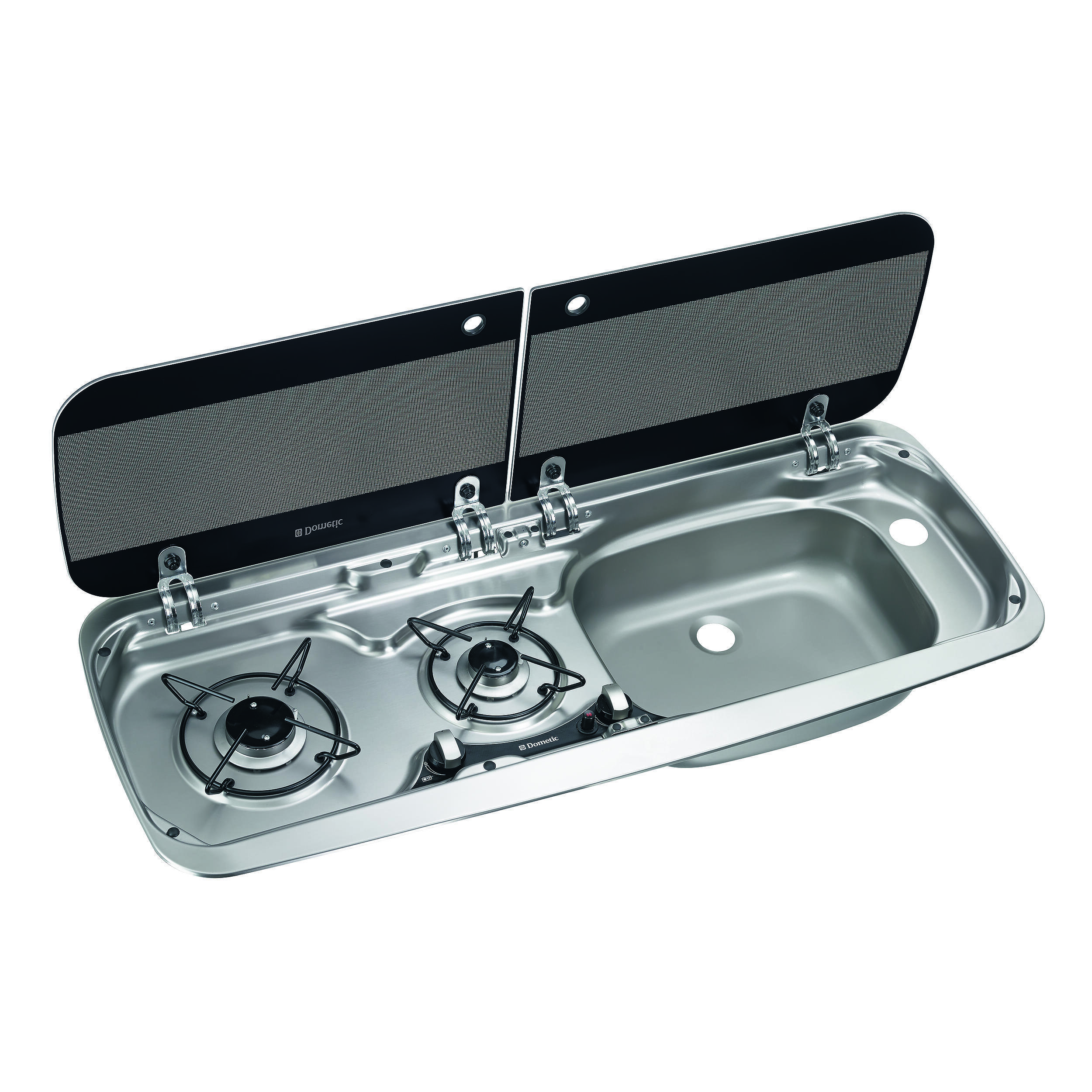 Combiné réchaud évier camping-car Dometic HS 2370 – 2 feux gaz + évier inox avec couvercle en verre