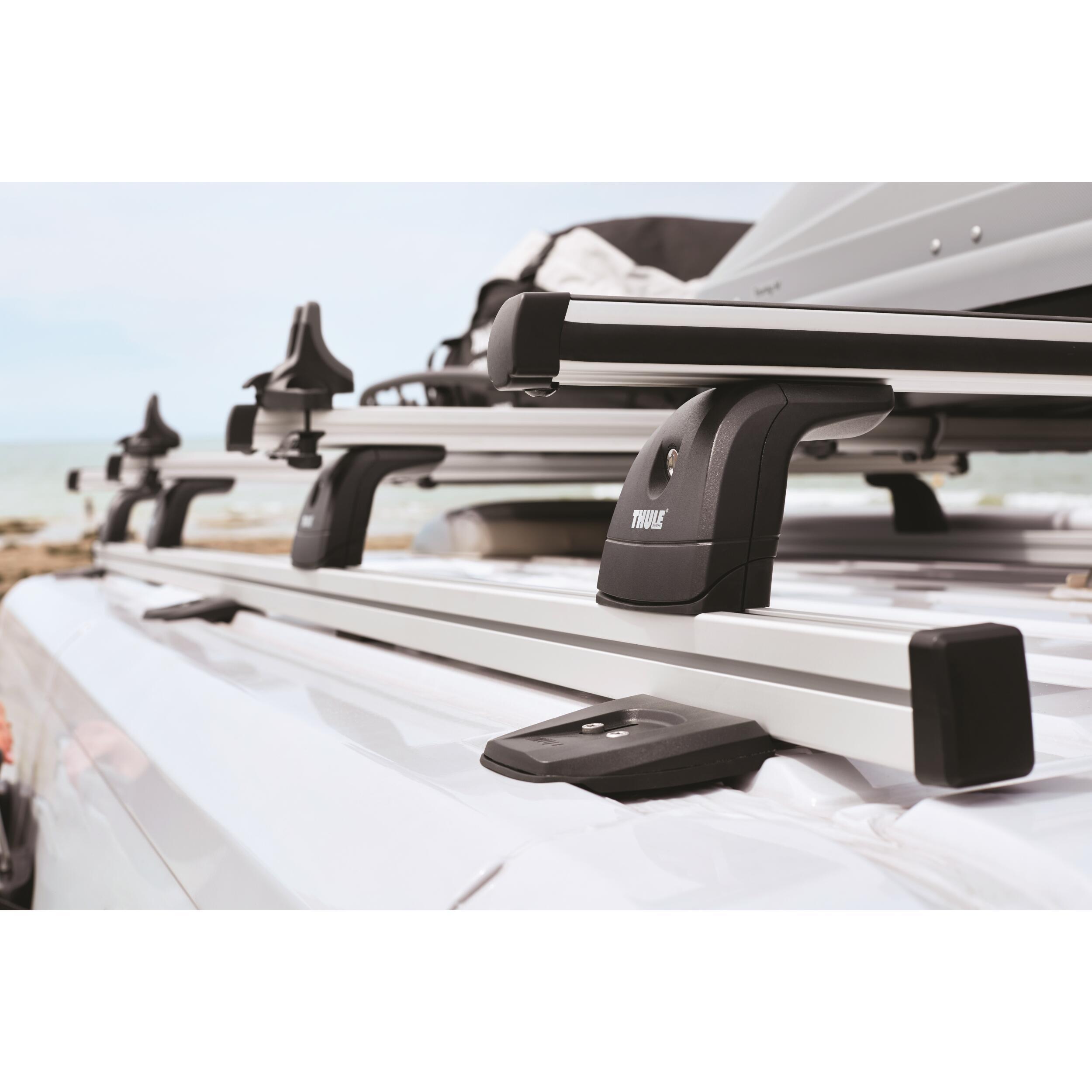 Pour Boxer / Jumper / Ducato à partir de 2006. Ces rails de galerie sont les pièces de base du nouveau système de portage pour fourgon développé par Thule : une fois fixés sur votre toit, vous pourrez utiliser toute la panoplie des accessoires Thule à votre guise. Le système de fixation Smart Clamps permet de fixer la galerie dans les points d'ancrage du toit sans aucun perçage. L'intégration est parfaite.
