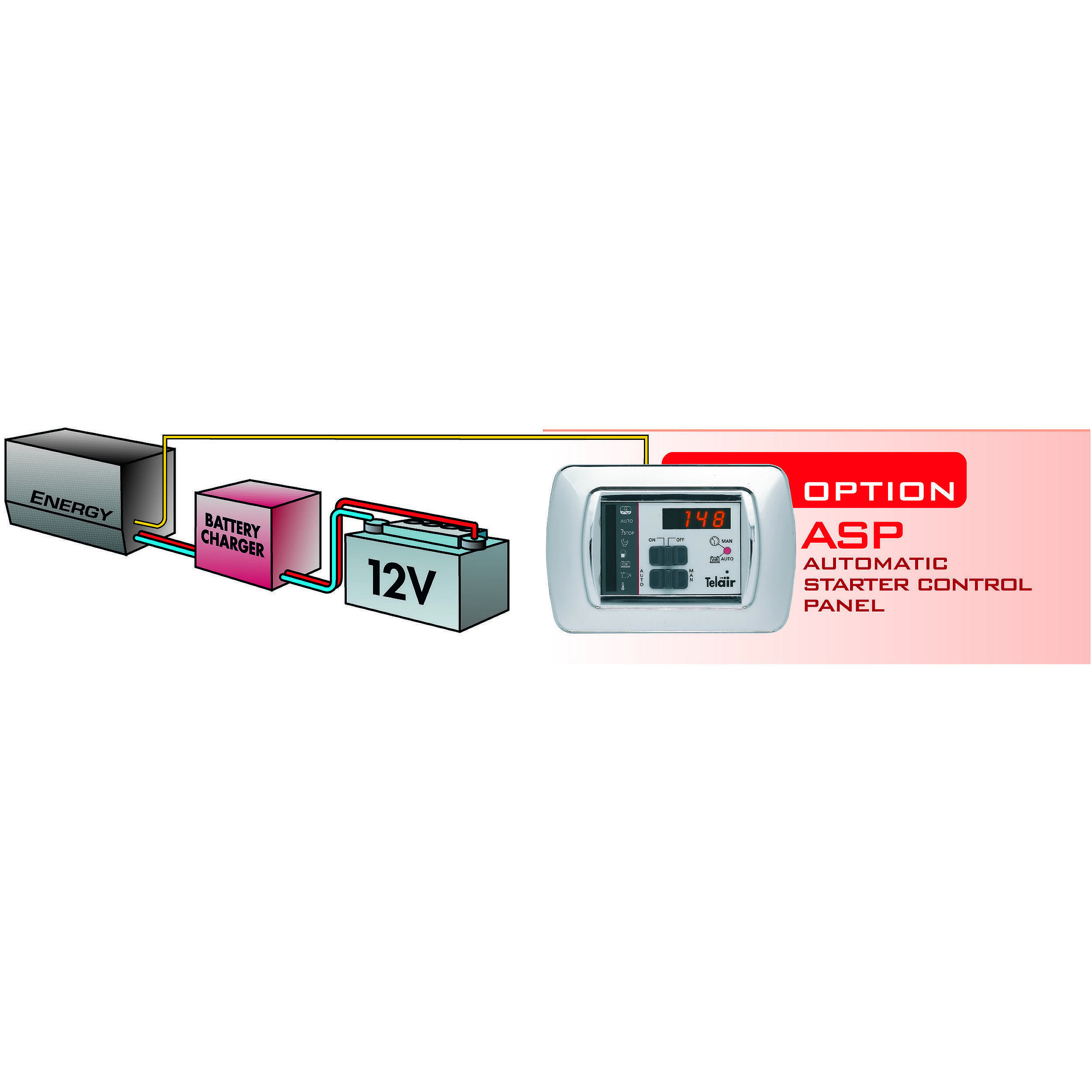 Ce système est spécifiquement conçu pour les groupes électrogènes Telair Energy fonctionnant au gaz ou à l’essence. Il remplace directement le tableau de commande d’origine, simplifiant l’installation sans modifier la structure existante de votre véhicule. Attention, ce modèle n’est pas compatible avec les groupes diesel : vérifiez bien le type de votre générateur avant achat. Une fois installé, l’ASP se connecte au chargeur de batterie de votre camping-car (12 V ou 220 V), assurant une recharge fluide et sécurisée, sans risque de surcharge ou de décharge profonde.