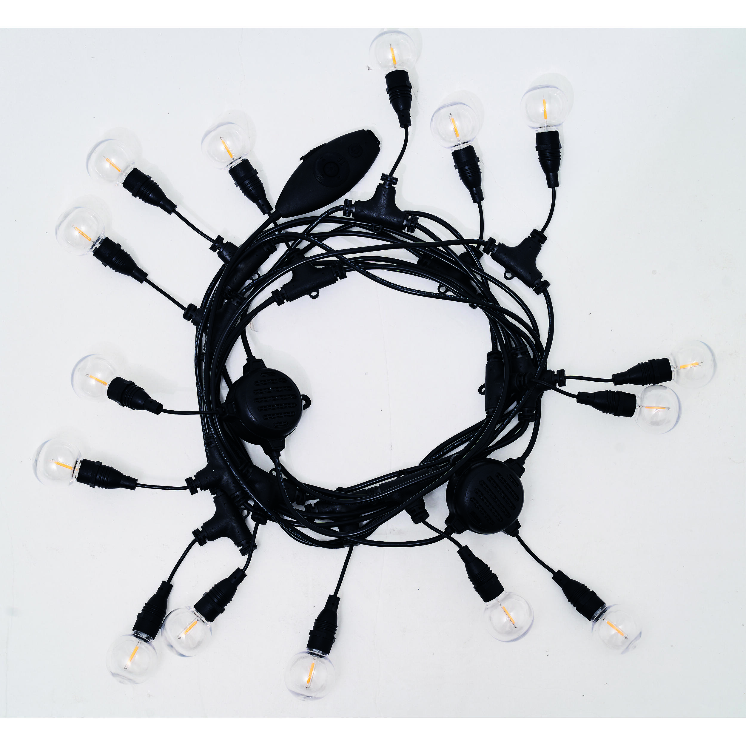 Guirlande LED SOPLAIR de 8 m avec 15 ampoules G40, enceintes Bluetooth intégrées, 3 niveaux de luminosité et mode rythmique. Étanchéité IPX4.