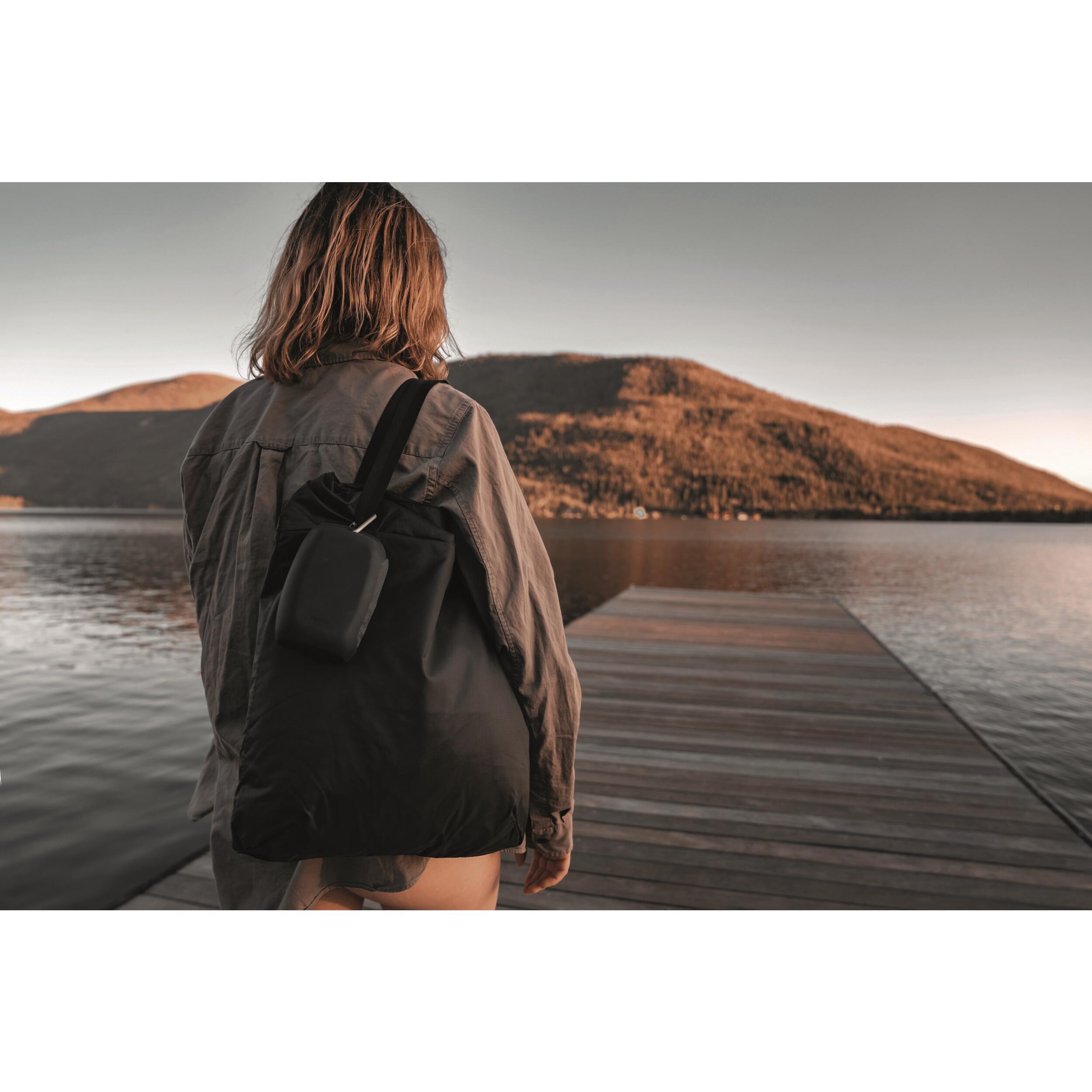 Disponible en plusieurs coloris sobres et modernes (Charcoal, Slate Blue, Black Granite), elle s’intègre parfaitement à l’univers du voyage responsable, minimaliste et pratique.