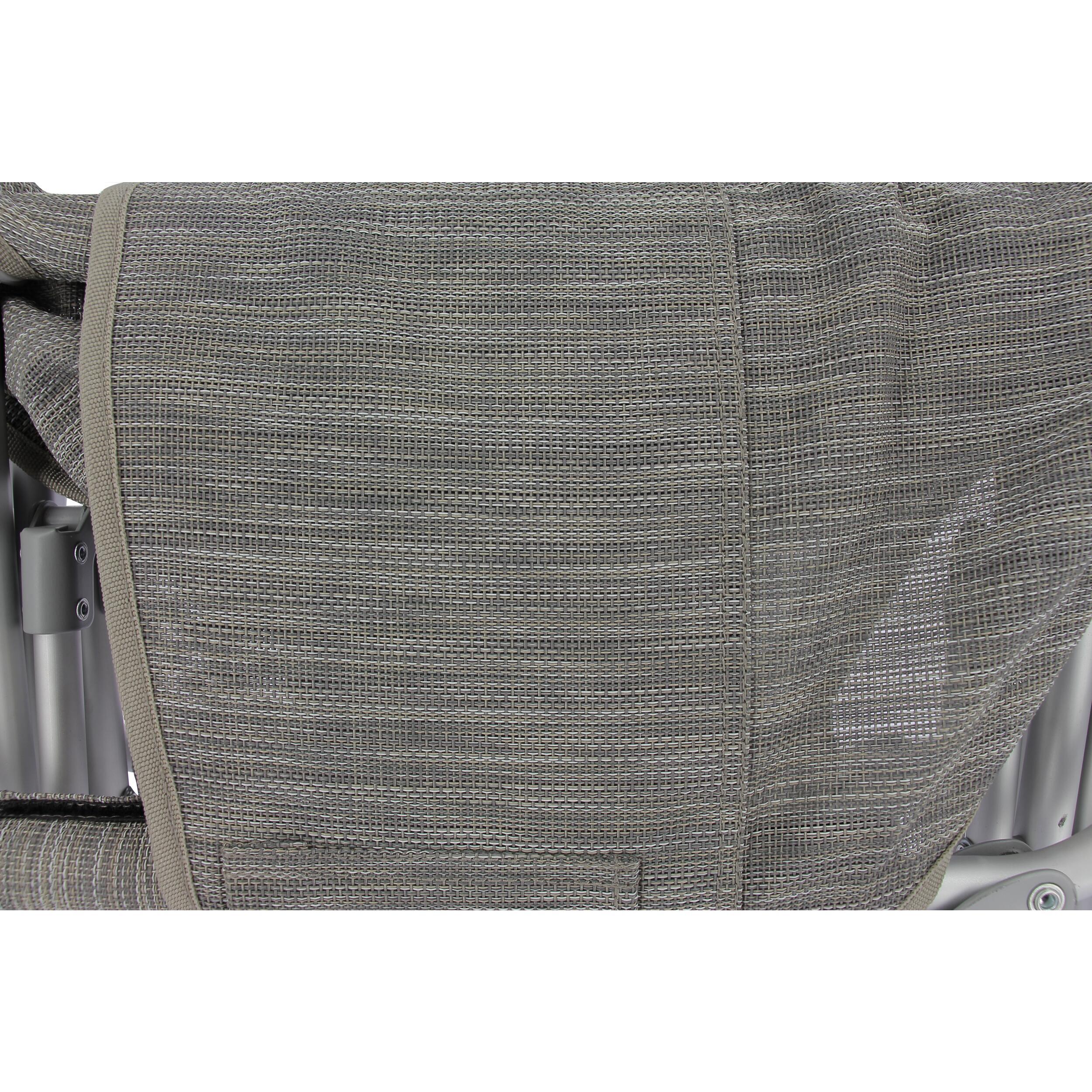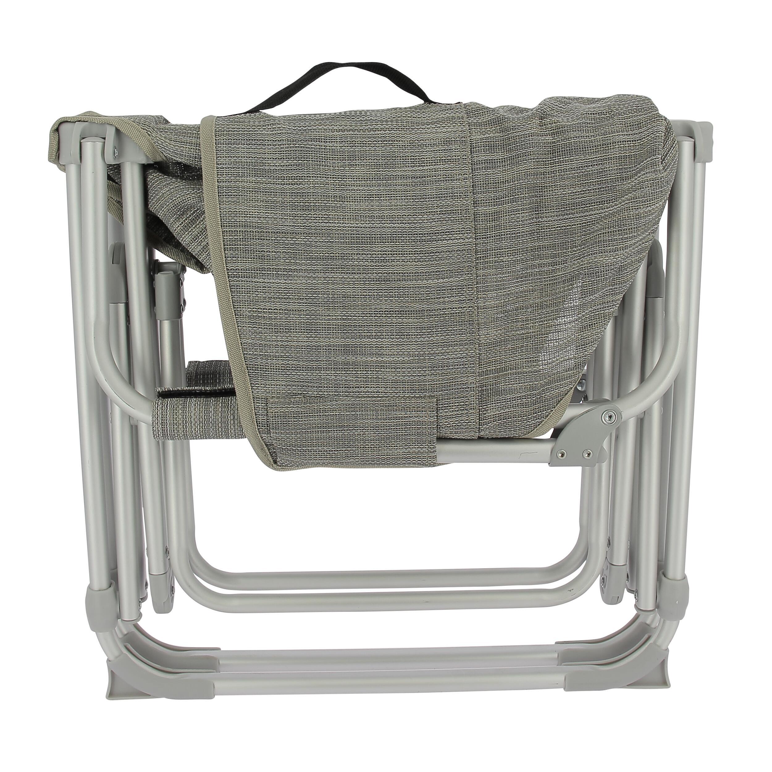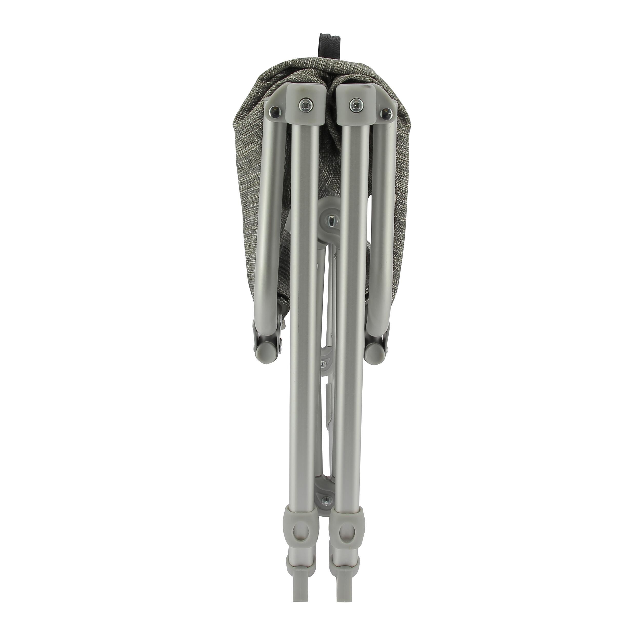 Son armature en aluminium garantit à la fois solidité et légèreté. Résistant, le fauteuil pliant supporte jusqu’à 100 kg tout en restant facile à manipuler.