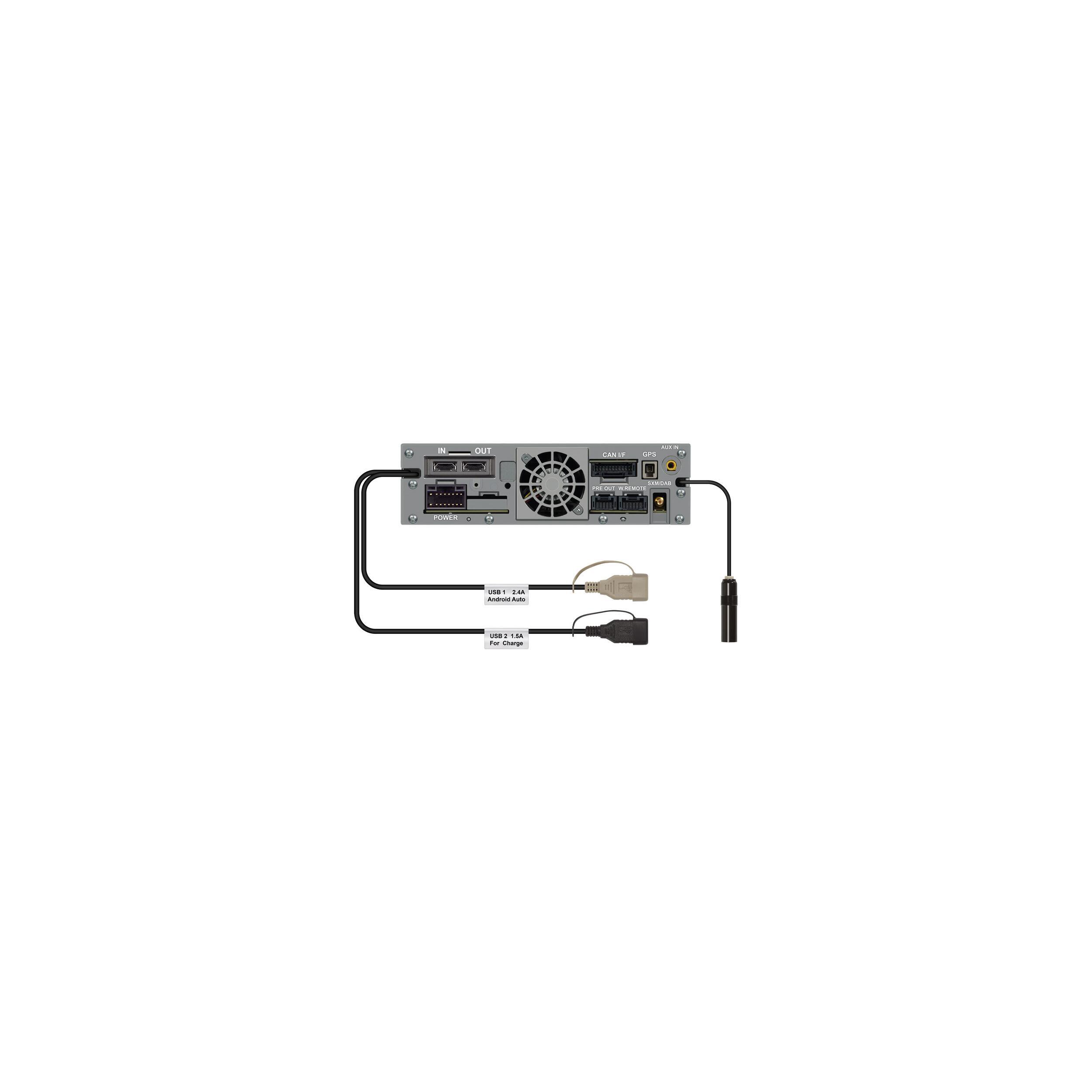 2 ports USB. Ecran capacitif ajustable. Compatible caméra de recul. Tuner AM/FM et numérique DAB+. Wifi. Connectivité Bluetooth mains libres. Amplificateur 4 x 50 Watts.
