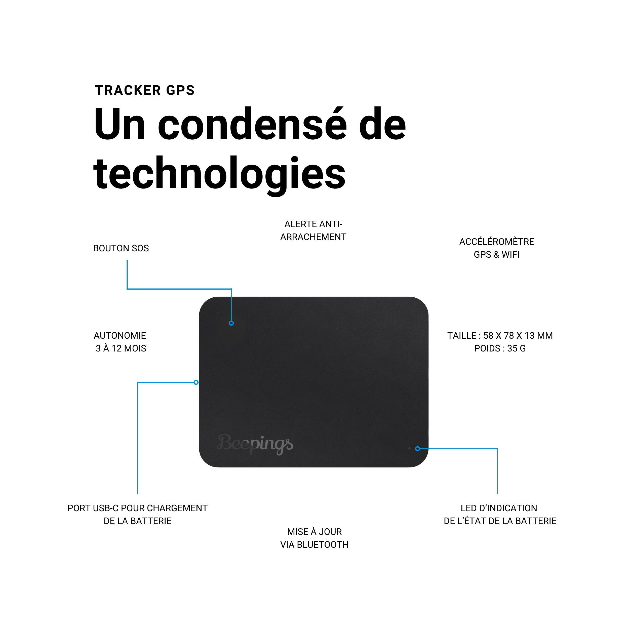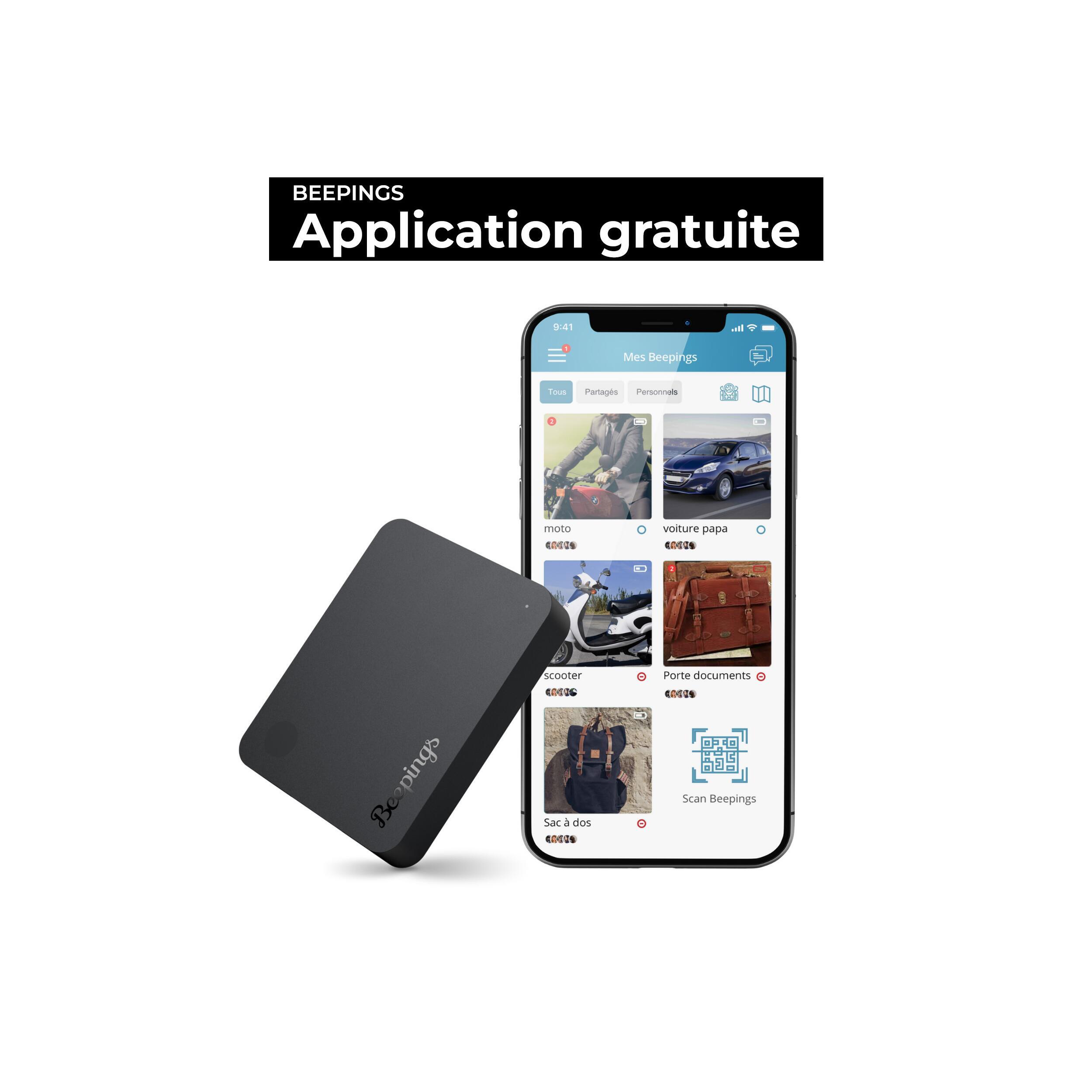 L'application gratuite Beepings (iOS & Android) vous donne un contrôle complet sur votre traceur :