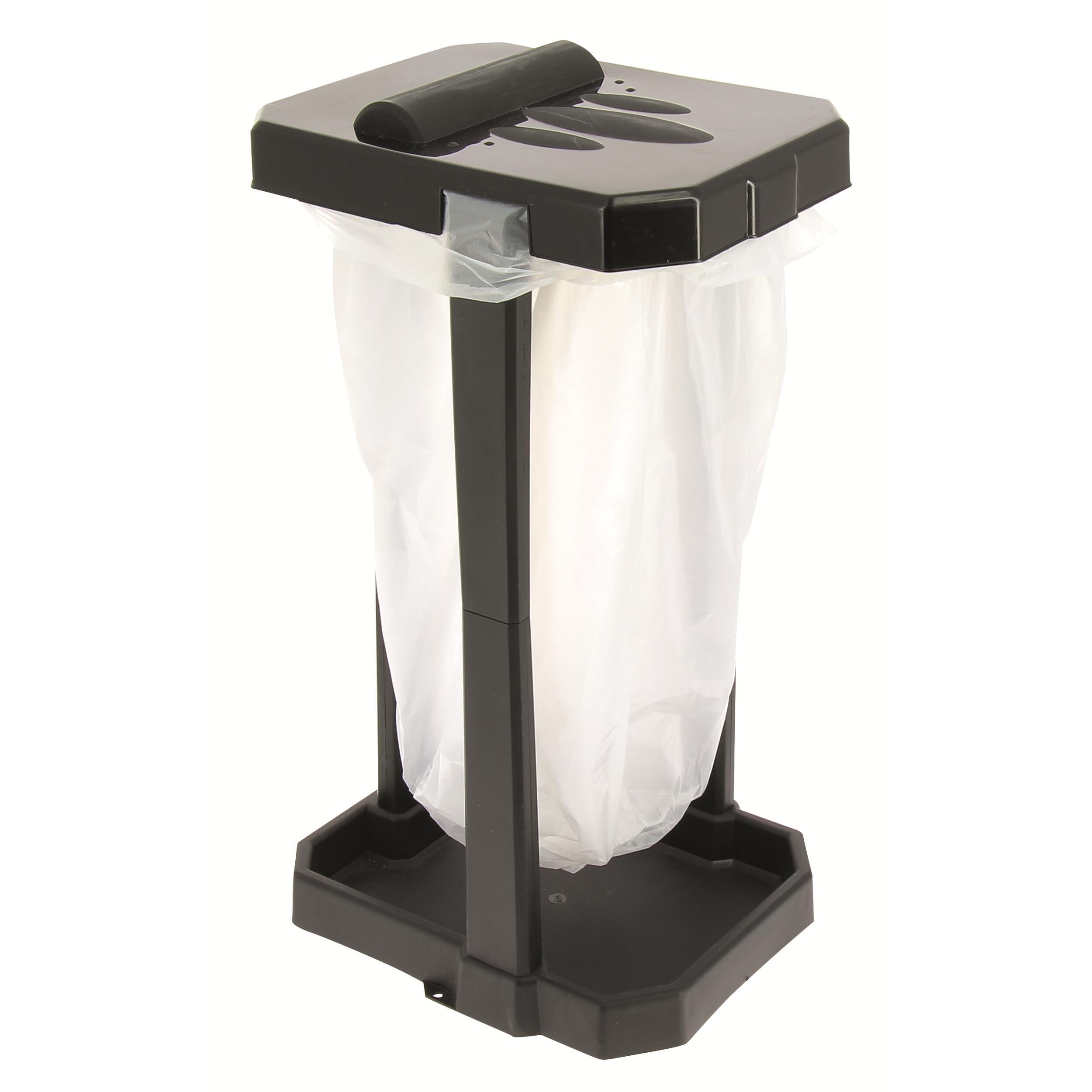 Sa conception ingénieuse permet d'utiliser deux sacs simultanément pour faciliter le tri sélectif et avec un couvercle. Les pattes de fixation assurent un maintien optimal. Fabriquée en plastique robuste, elle intègre un réservoir anti-écoulement à la base, vous assurant propreté et fiabilité durant tout votre séjour.