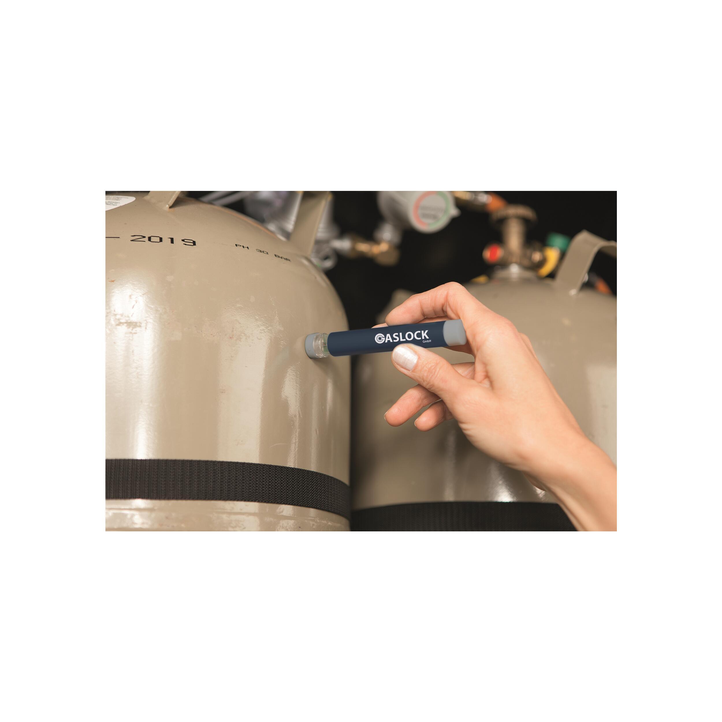L’indicateur Gaslock fonctionne par ultrasons et s’utilise en quelques secondes. Il vous suffit de positionner l’appareil horizontalement contre la paroi de votre bouteille de gaz à différents niveaux. Si le voyant LED s’allume en vert, cela signifie que du gaz est encore présent à ce niveau. Si la lumière devient rouge, le gaz n’est plus détecté à cet endroit.