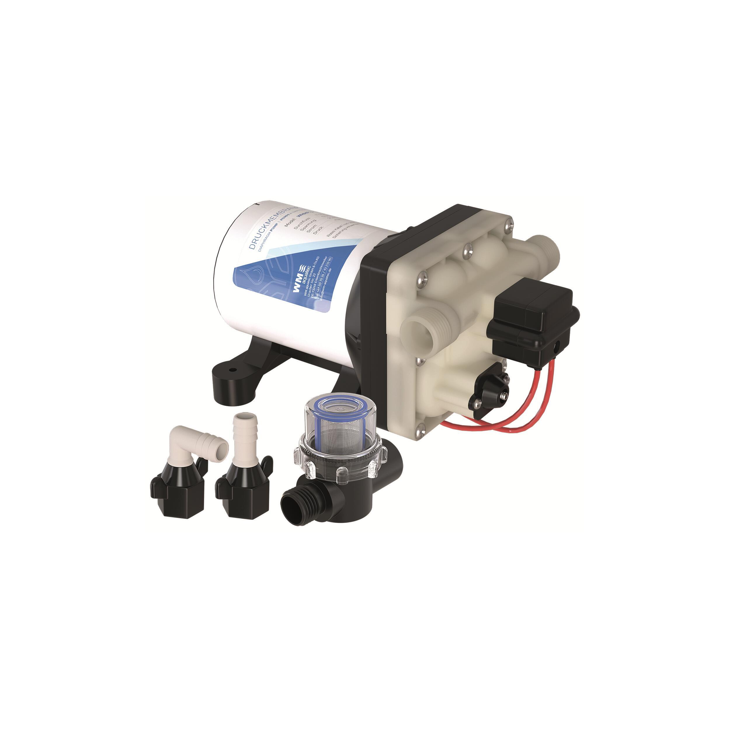 Pompe à eau potable automatique avec réglage by-pass. Haut débit et un fonctionnement sans pulsations. Très silencieuse, technologie à membrane, à 4 chambres et pieds