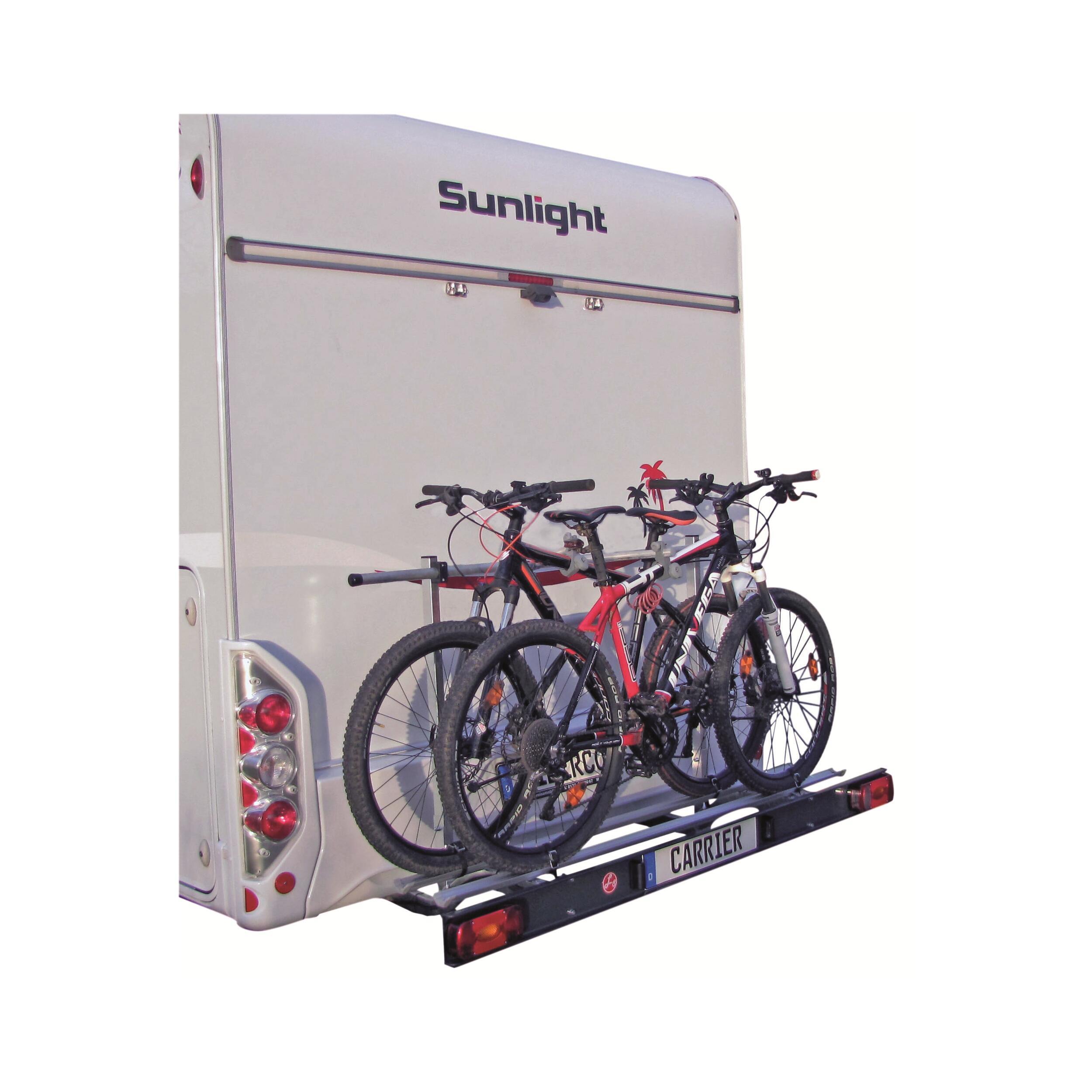Porte vélos Carrier, parfait pour des vélos à assistance électrique ou autres. Maintien par bras et sangles fournis. Charge utile : 110 kg max.