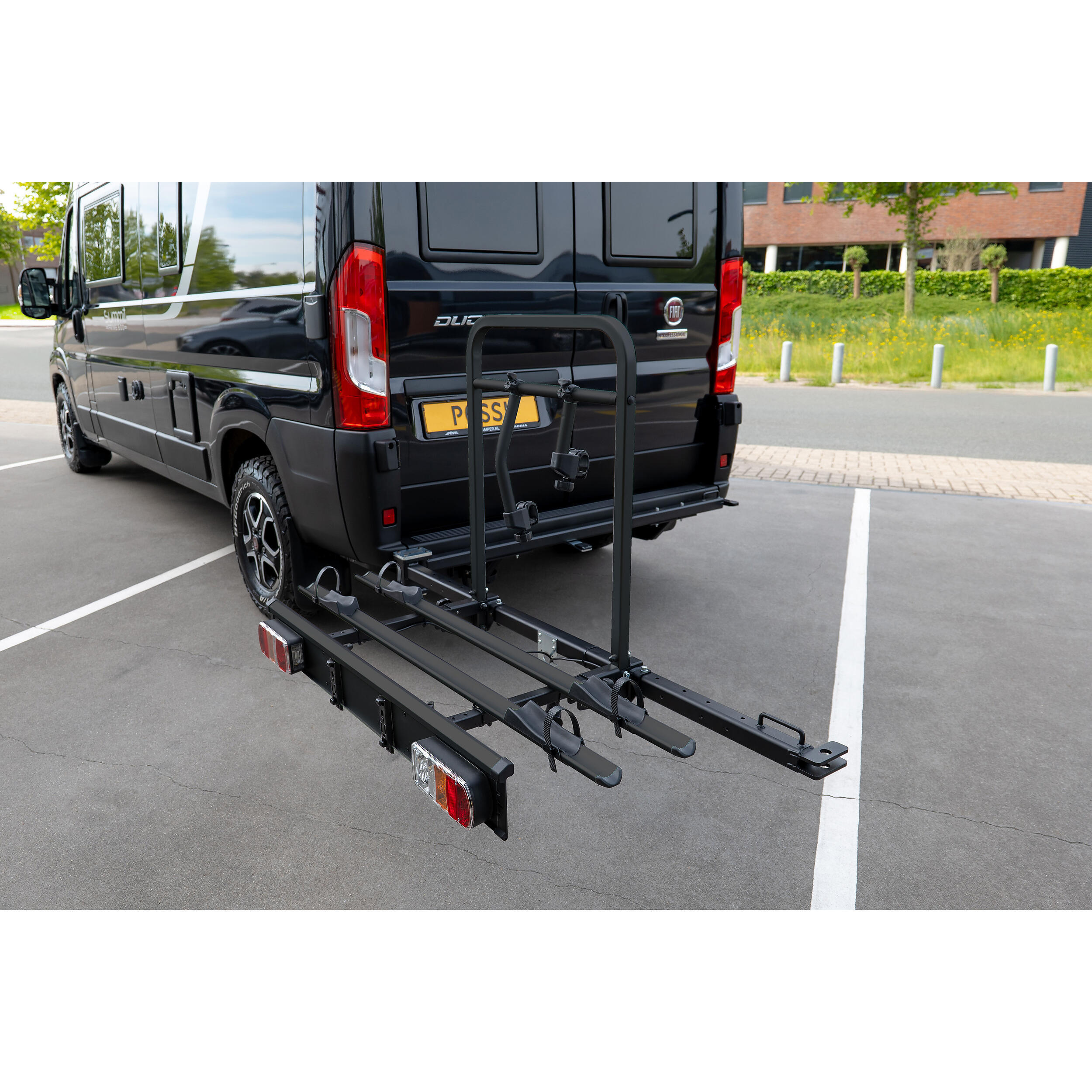 Le montage sur châssis limite les vibrations et offre une excellente stabilité sur route, ce qui en fait un porte-vélos idéal pour les longs trajets, les vacances en camping-car ou les escapades en van aménagé.