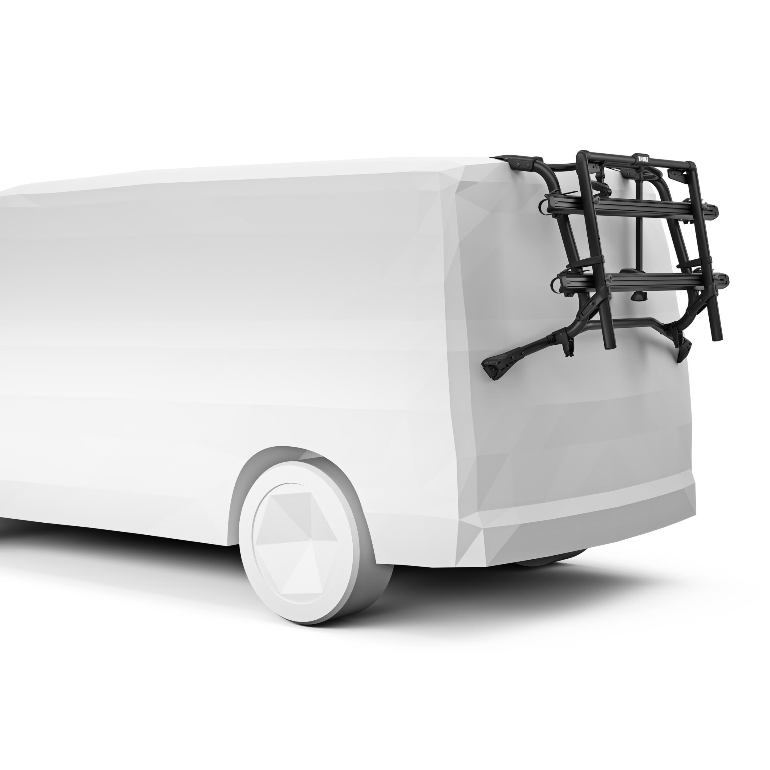 Lorsqu’il n’est pas utilisé, la plateforme se replie verticalement contre le hayon, libérant l’accès arrière du van. Sans les vélos chargés, le coffre reste accessible, un vrai plus pour le quotidien.