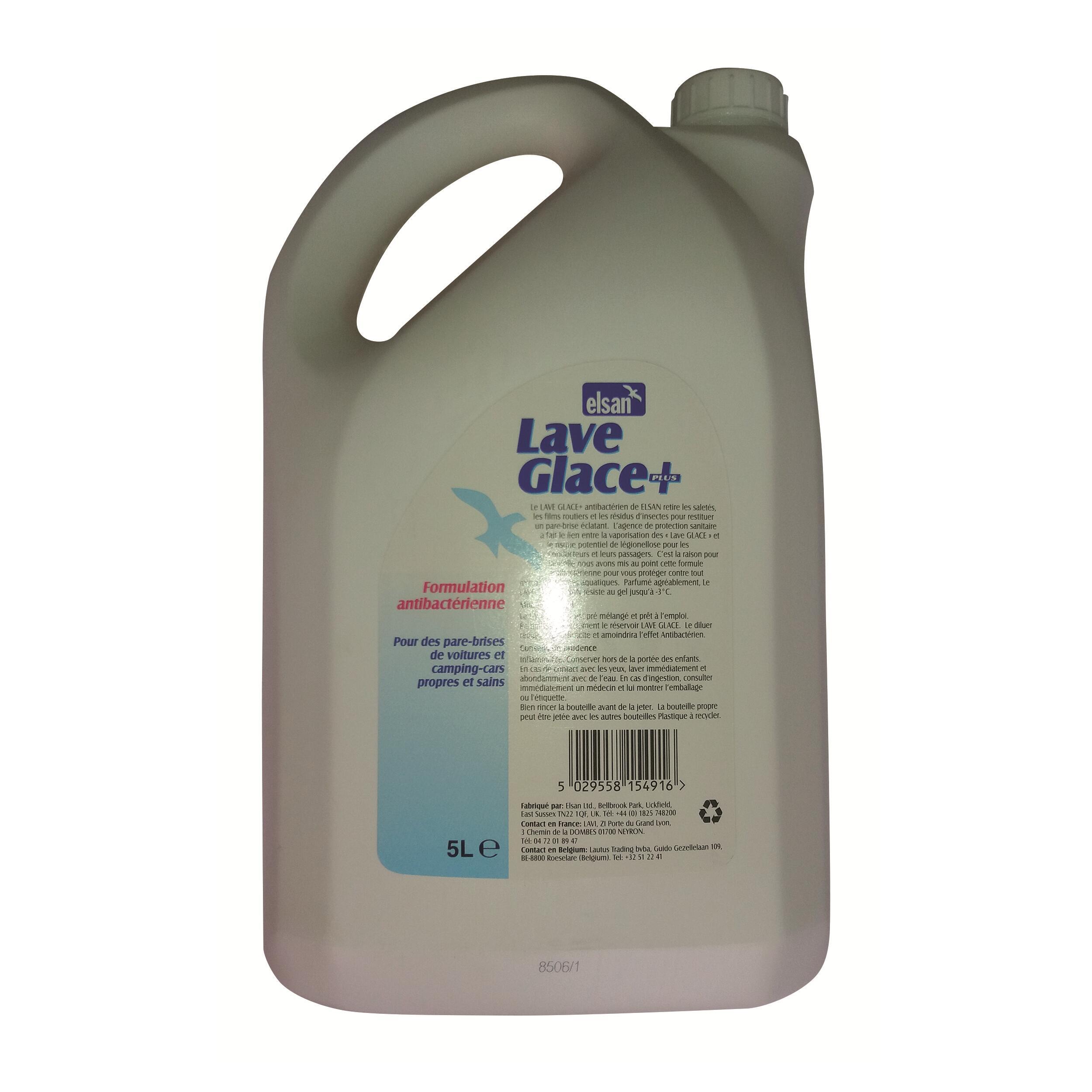 Nettoyant lave-glaces Elsan 5 litres, spécialement conçu pour les pare-brises de camping-cars et fourgons. Efficace jusqu'à -10°C.
