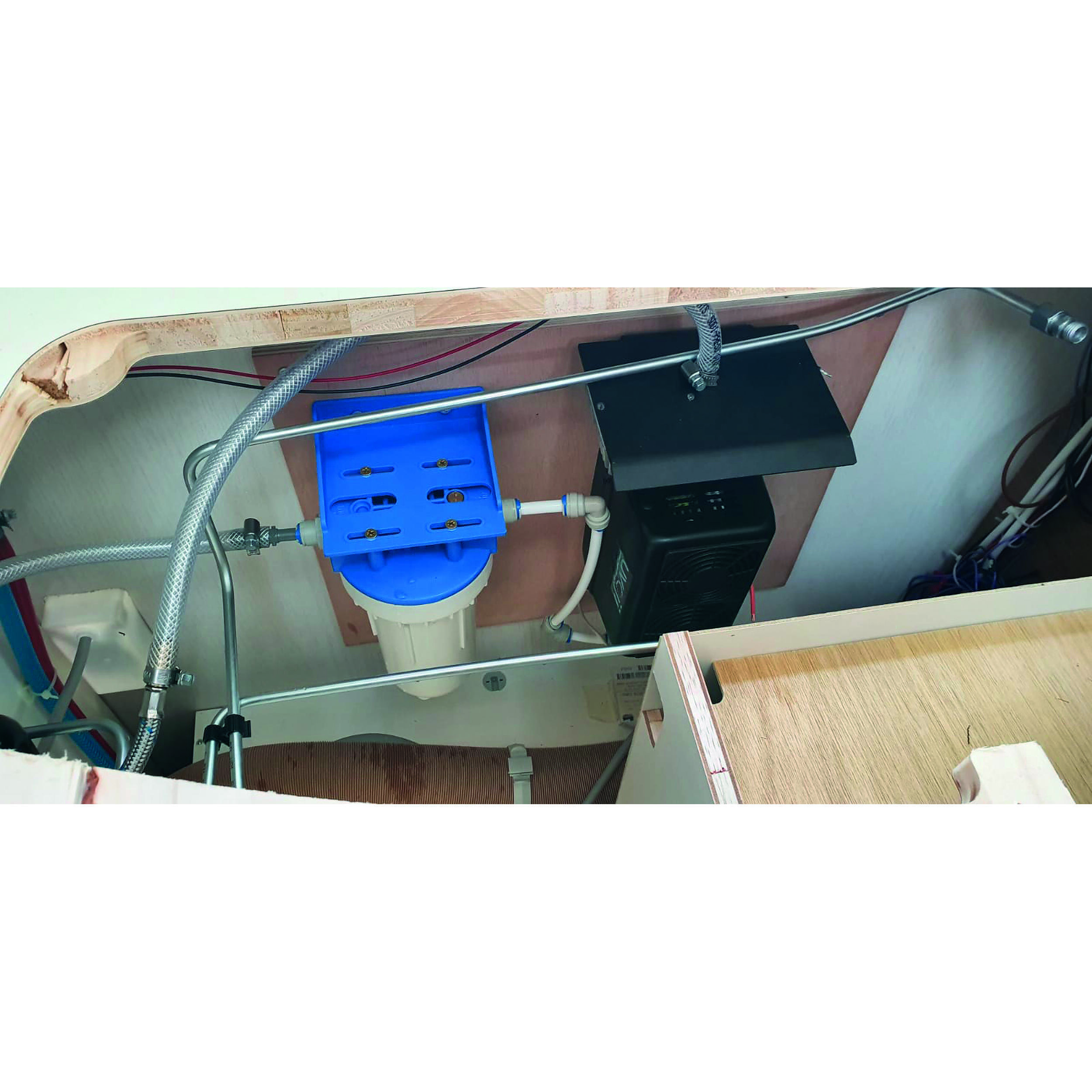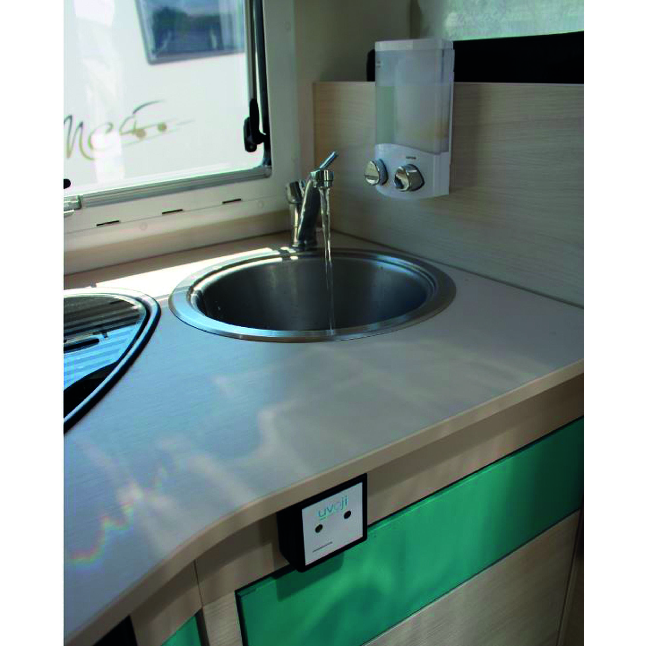 Le purificateur Oji Pure est pensé pour les espaces restreints des véhicules de loisirs. Avec des dimensions compactes, il peut être facilement installé sous un évier, sans encombrer votre espace de vie. Son fonctionnement est 100 % autonome :
