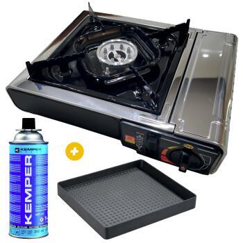 La plancha à gaz de la marque Kemper est idéale pour cuisiner en plein air à l'aide d'une cartouche de gaz. Avec un allumage piézo et un revêtement anti(adhésif, il est agréable de cuisiner avec cette plancha.