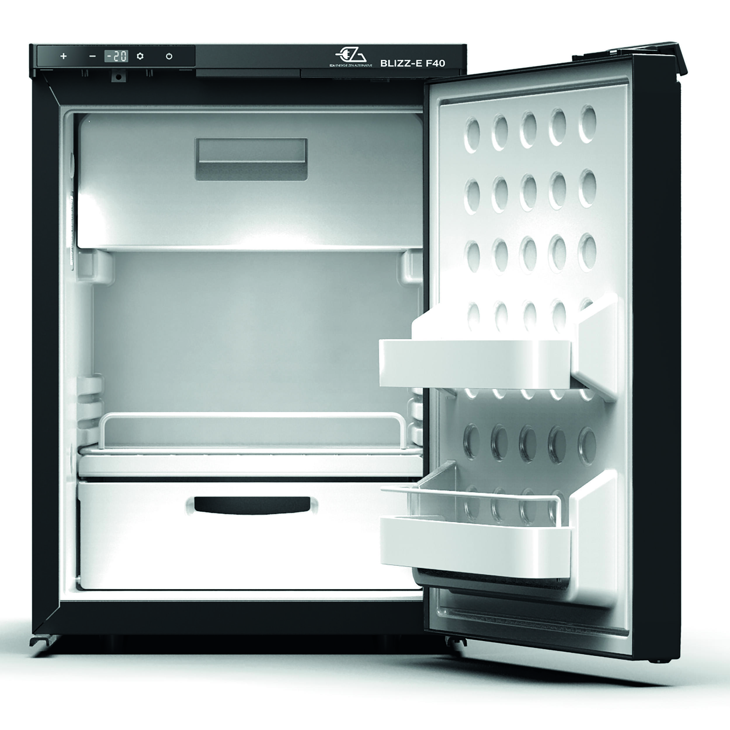 Le réfrigérateur à compression BLIZZ-E EZA est conçu pour les véhicules de loisirs. Il assure la conservation des aliments au frais ou congelés et fonctionne en continu, quelles que soient les conditions extérieures. Il s’intègre facilement dans les aménagements de cuisines compactes.