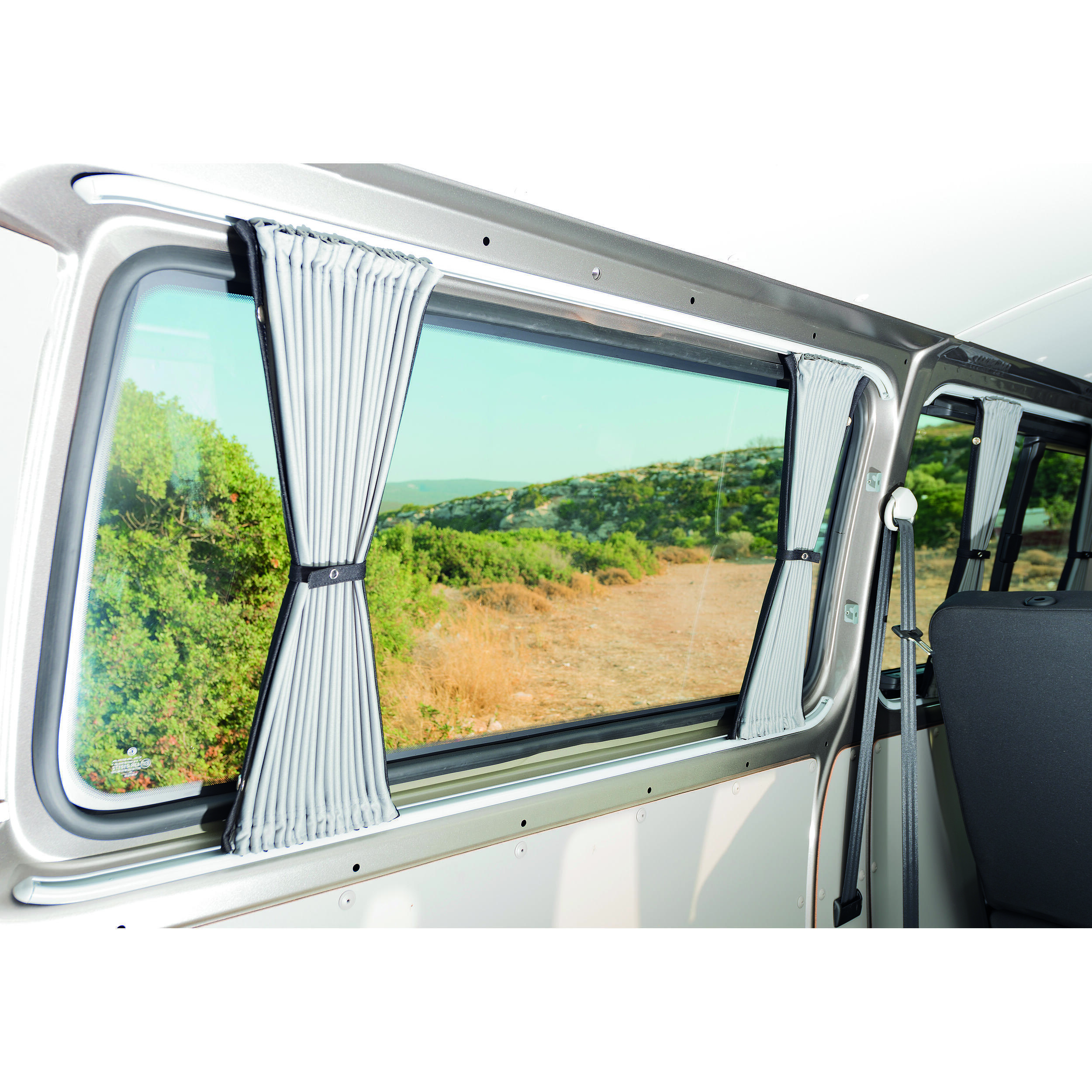 Rideaux occultants Soplair 5 pièces : double peau opaque pour camping-car et fourgon, assurant intimité, confort et protection solaire.