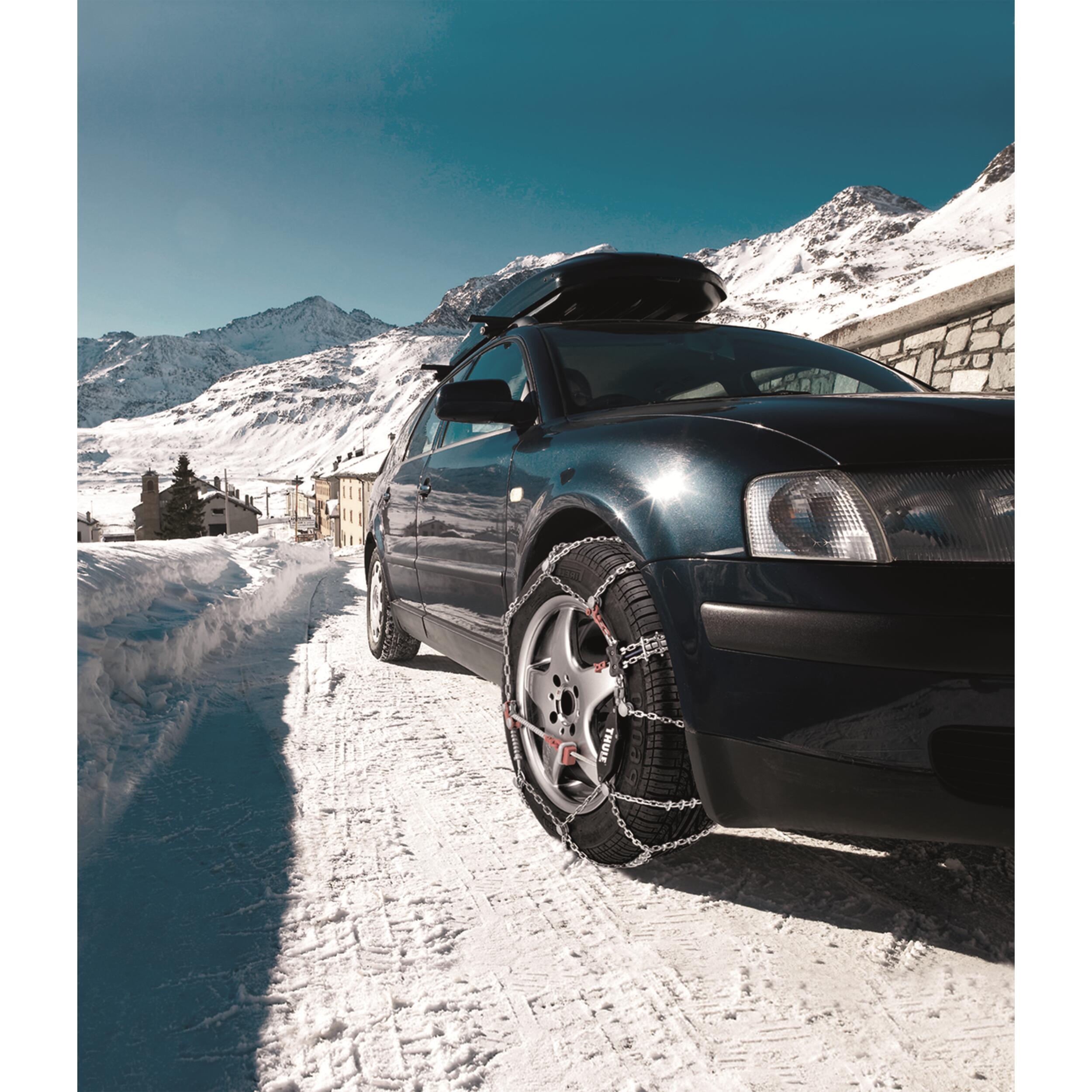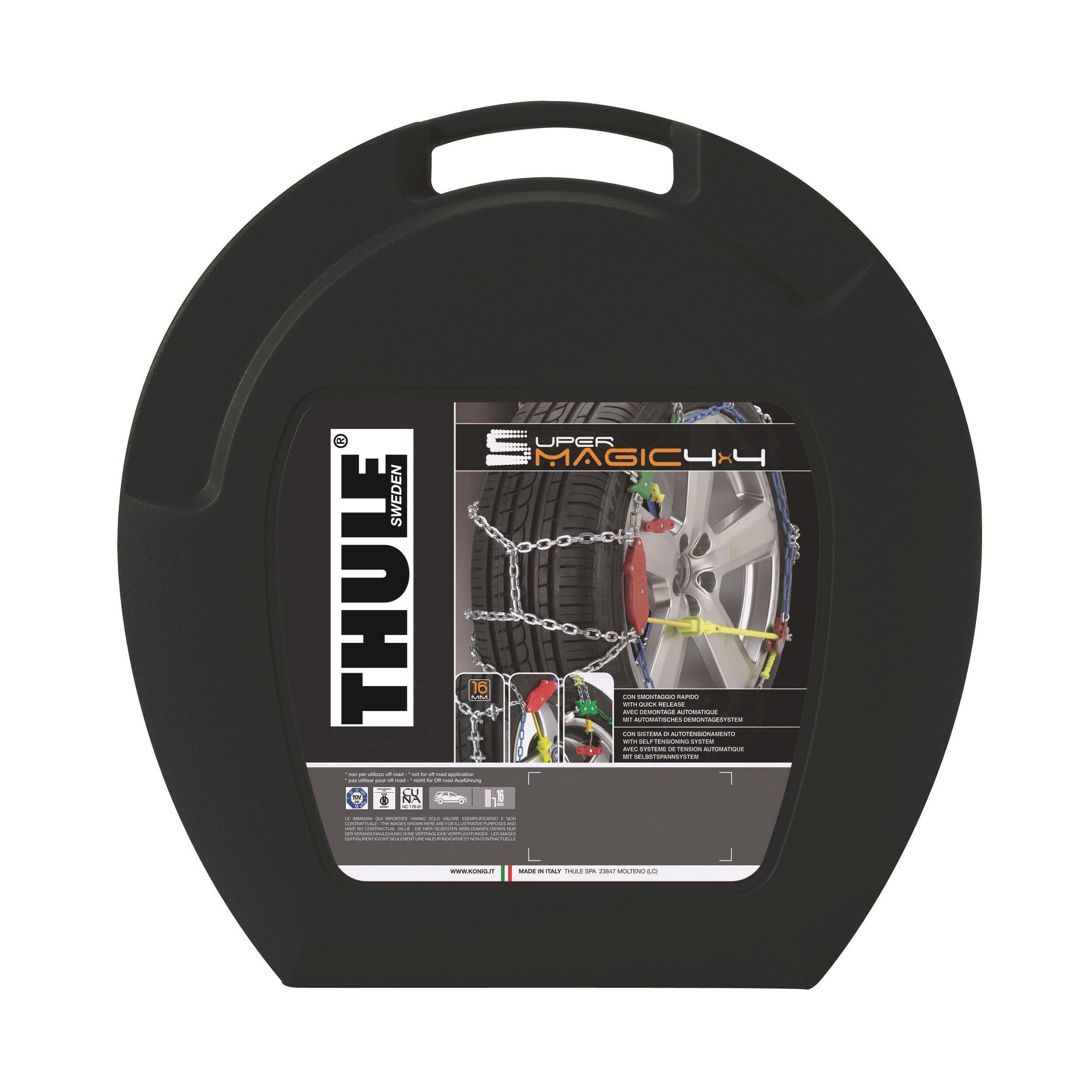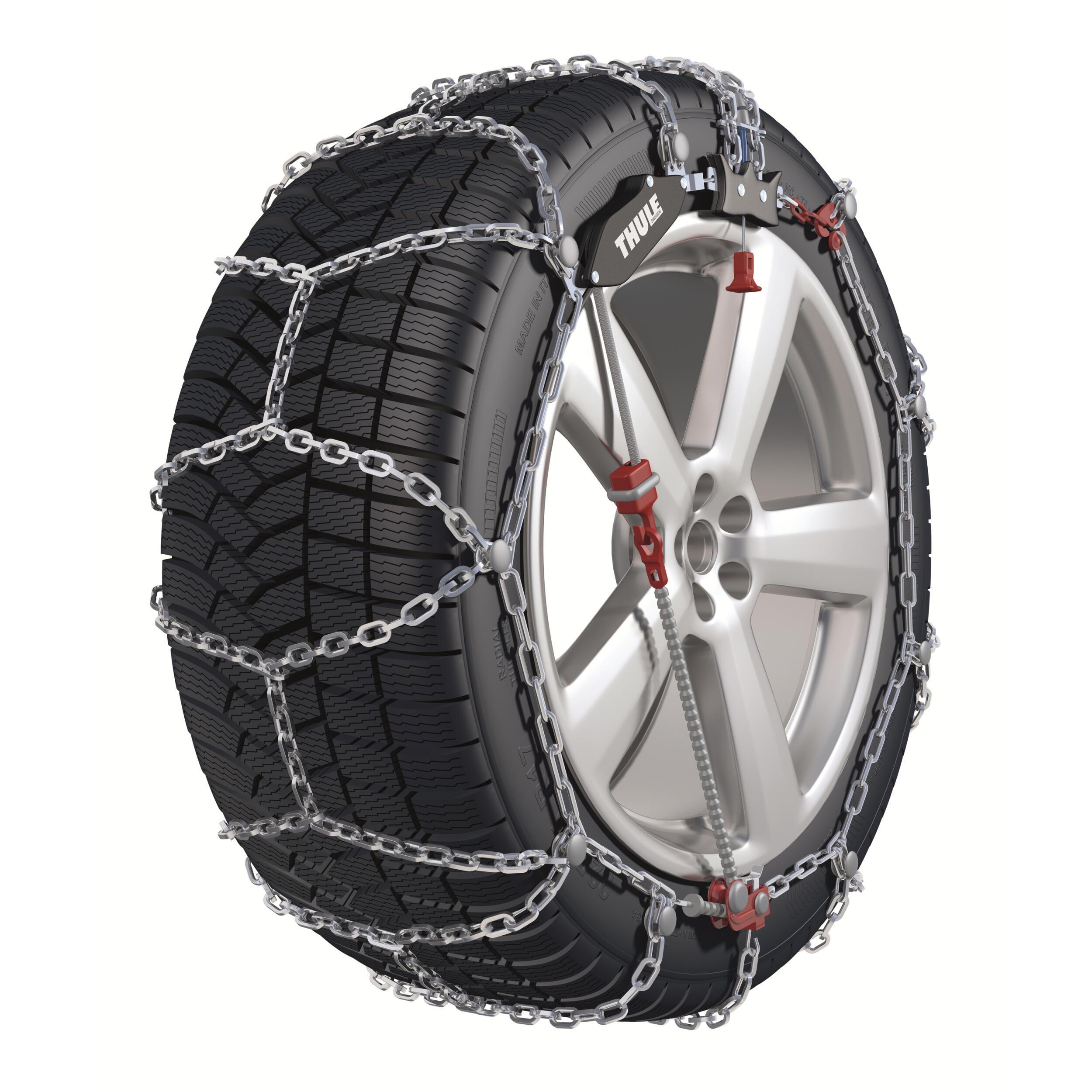 Chaînes à démontage automatique. Une simple action sur le levier et la chaîne s'enlève sans même avoir à déplacer le véhicule. Mise en place facile grâce au système auto-tenseur (également sans déplacer le véhicule). Parfaitement adaptées aux camping-cars.