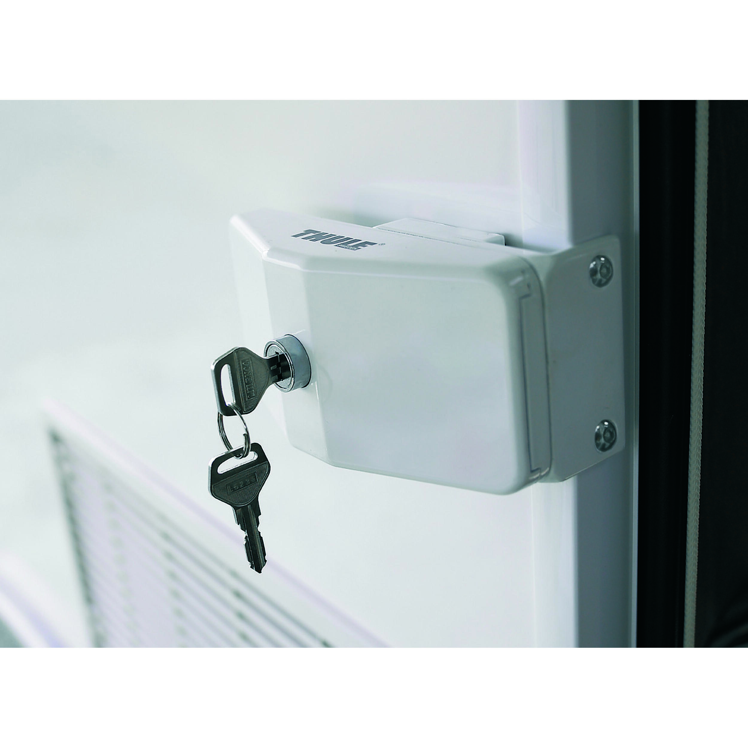La serrure Door Lock Frame Thule sécurise efficacement une porte de votre véhicule de loisirs pour voyager et dormir en toute confiance.