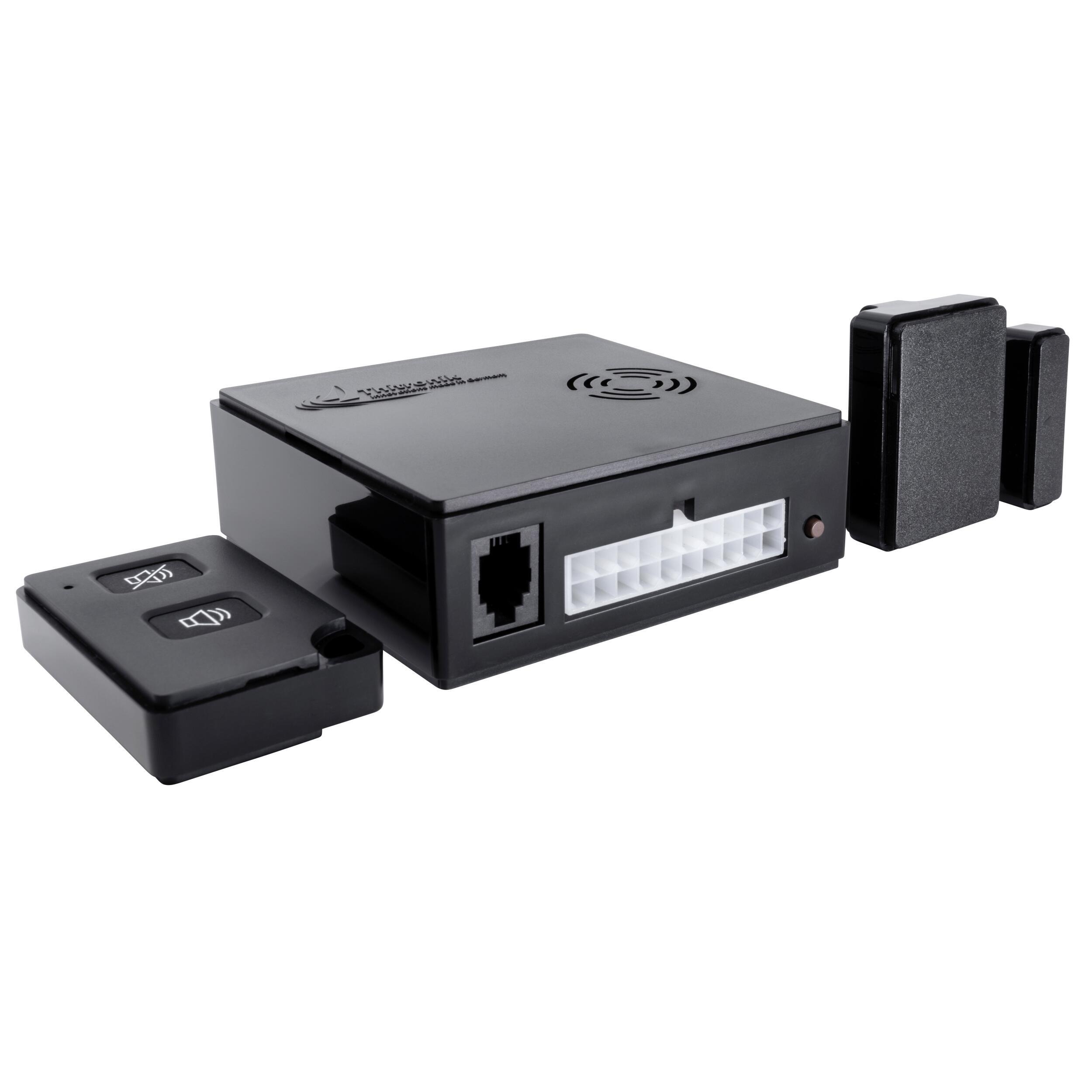Des contacts magnétiques radio modernes s’adaptent à différents modèles de châssis de fenêtres et sécurisent l’enveloppe du véhicule. Cela permet d’éviter les fausses alarmes.