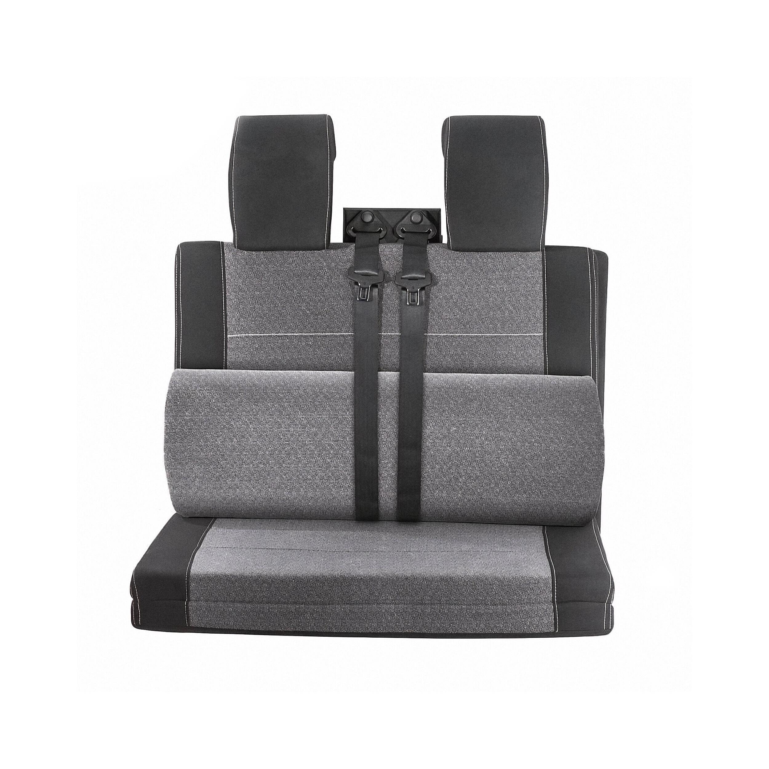 Le kit est équipé de housses d’appuie-tête. L’ensemble utilise le tissu original Ducato noir/mélange pour conserver une apparence cohérente avec l’intérieur.