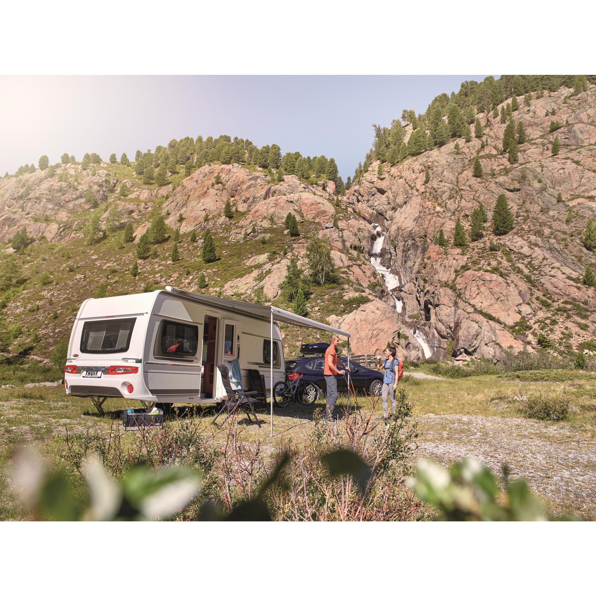 Protégez-vous du soleil ou de la pluie et profitez d’un espace de vie extérieur confortable, où que vous soyez stationné avec le store Omnistor 6300 de la marque Thule.