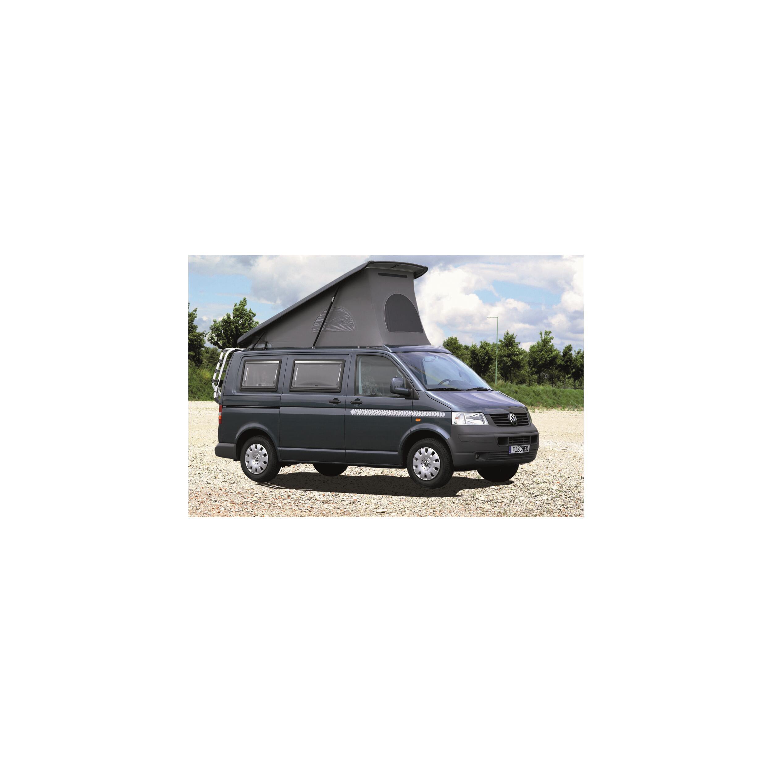 Complément de volume habitable, le toit relevable sur fourgon, vous permet de tenir debout en position ouverte et de profiter de la convivialité d'un véhicule à peine plus encombrant qu'une voiture : espace à vivre plus couchage 2 personnes possible en option. En position fermée, la faible hauteur hors tout (inférieure à 2m hors ford custom) vous permet l'accès à certains parkings. La coque et la casquette, profilées, adhèrent au galbe du véhicule et garantissent l'étanchéité et l'amélioration de la pénétration dans l'air du véhicule. Un contre cadre métallique vient renforcer cette installation et compenser la découpe. La coque en polyester renforcé et revêtue d'un habillage doux créant une sensation de confort. Toile en polyester gris traitée anti-UV. 3 ouvertures : deux latérales et une avant ou arrière selon l'ouverture avec double fermeture coulissante pour moustiquaires et rideaux d'occultation.