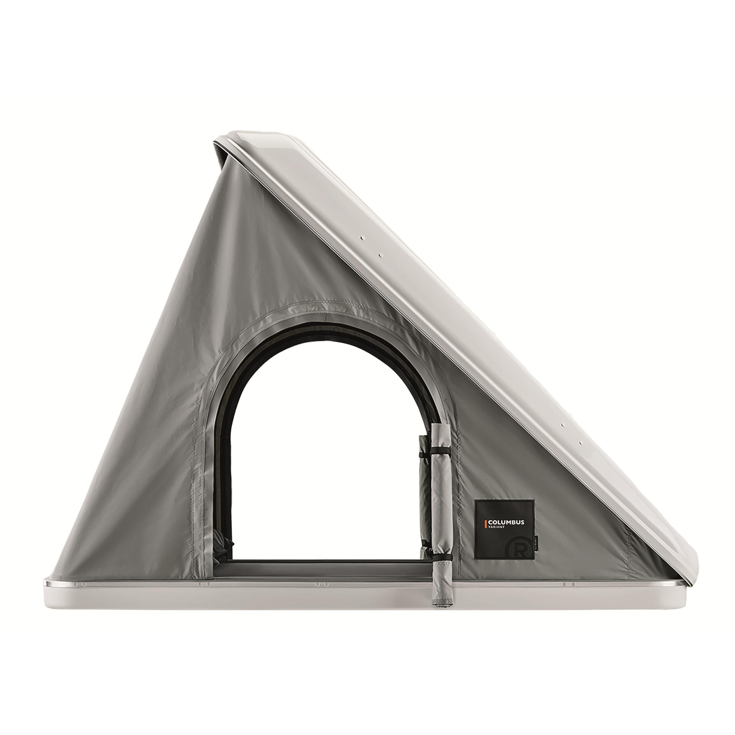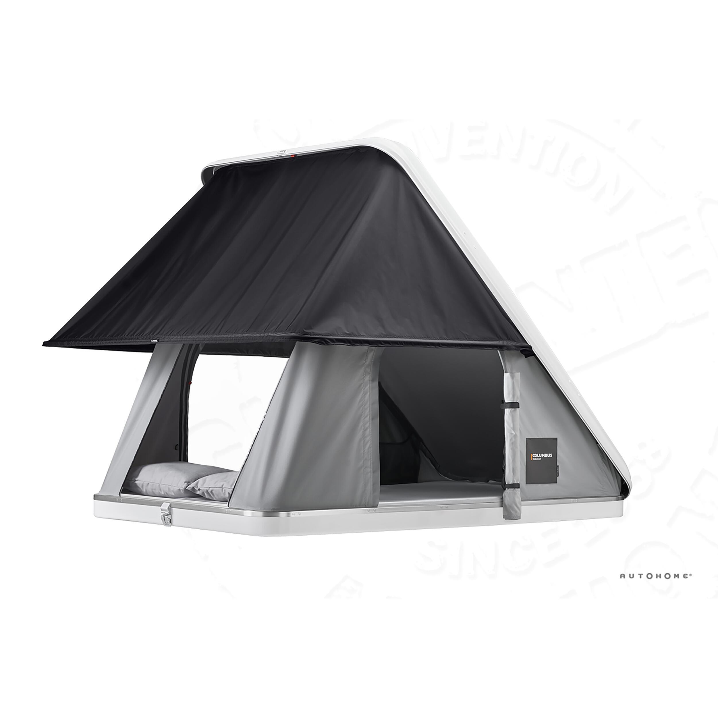 Les coques de la série Columbus se déclinent en différentes tailles et longueurs et ont toutes la même forme et le même design: une ligne fluide, nette et aérodynamique, une esthétique parfaite même, lorsque la tente est installée sur une petite voiture.