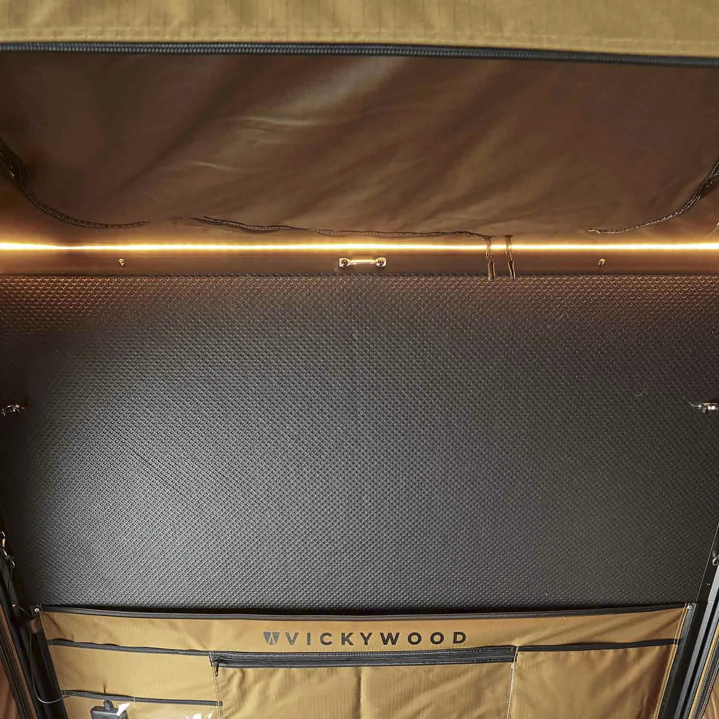 Elle intègre également plusieurs équipements : un matelas pneumatique avec fermeté réglable, deux éclairages LED, un tapis anti-condensation, un sac à chaussures et un organisateur au plafond.