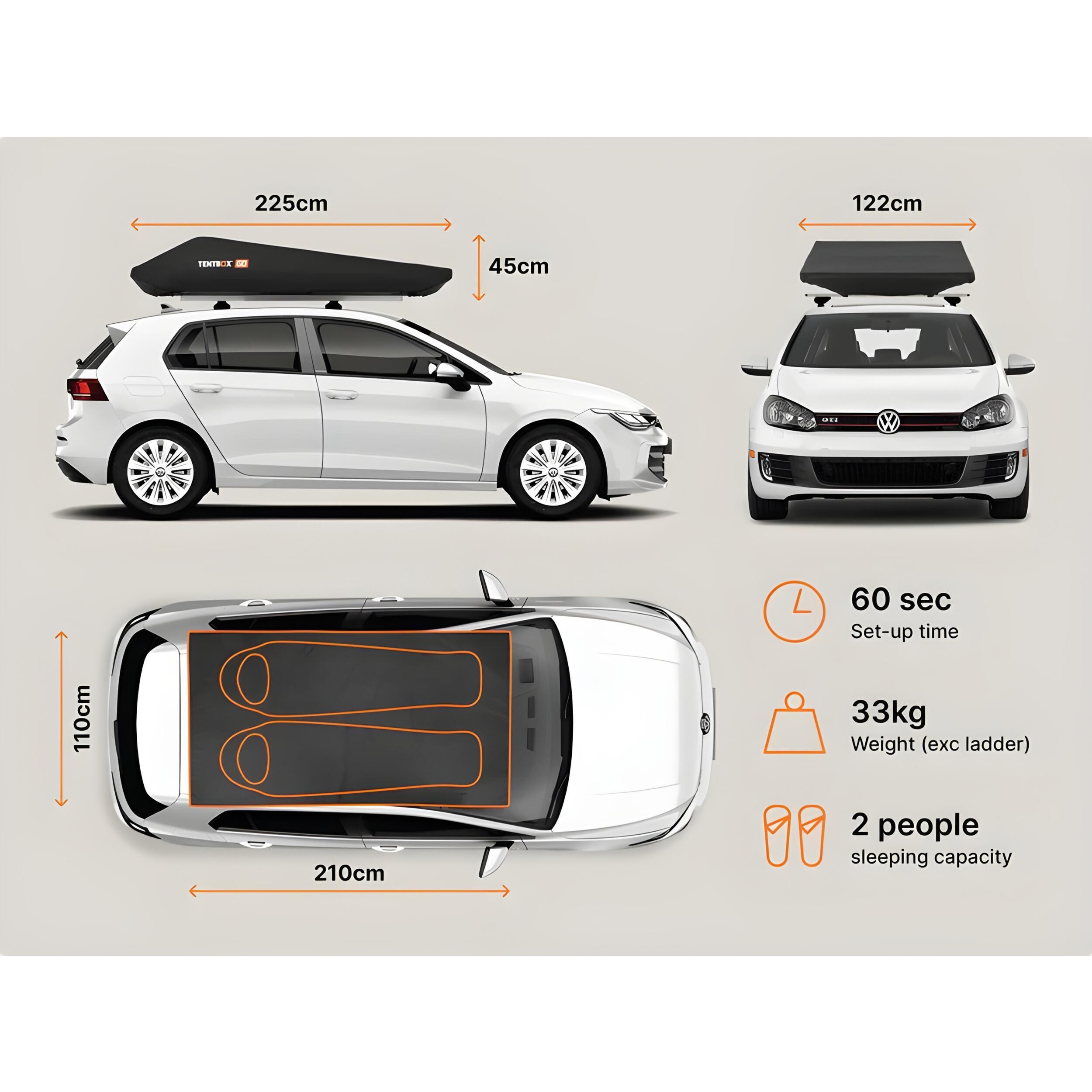 La TentBox GO s’adresse à une nouvelle génération d’explorateurs souhaitant voyager sans contraintes : pas besoin de camping-car pour profiter d’un confort de couchage en pleine nature. Elle est compatible avec la majorité des barres de toit et peut être montée sur des voitures compactes, SUV ou vans aménagés.