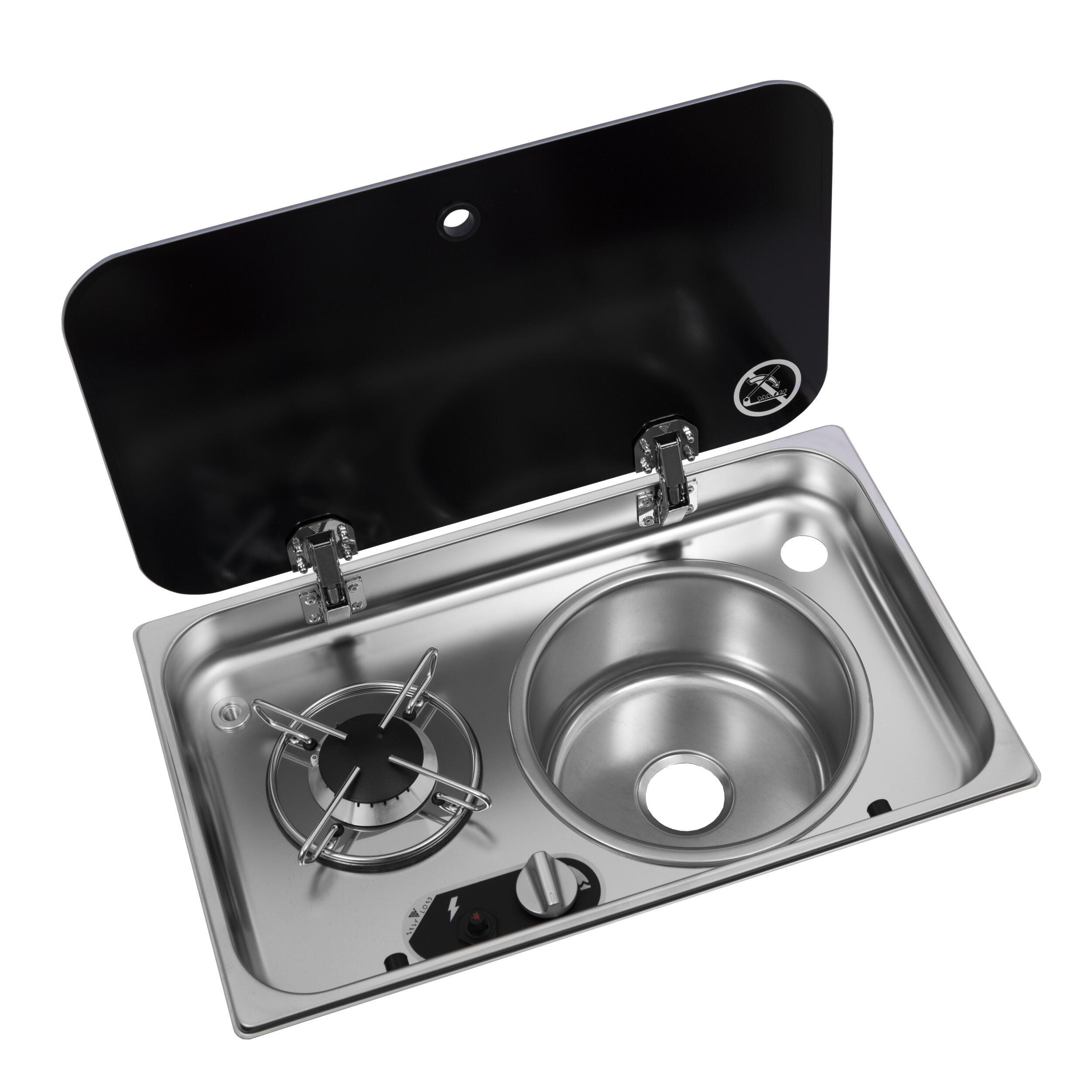 Réchaud à gaz 1 feu encastrable avec couvercle en acier inoxydable : + évier à droite 526 ×326Réchaud à gaz 1 feu encastrable avec couvercle en acier inoxydable : + évier à droite 526 ×326