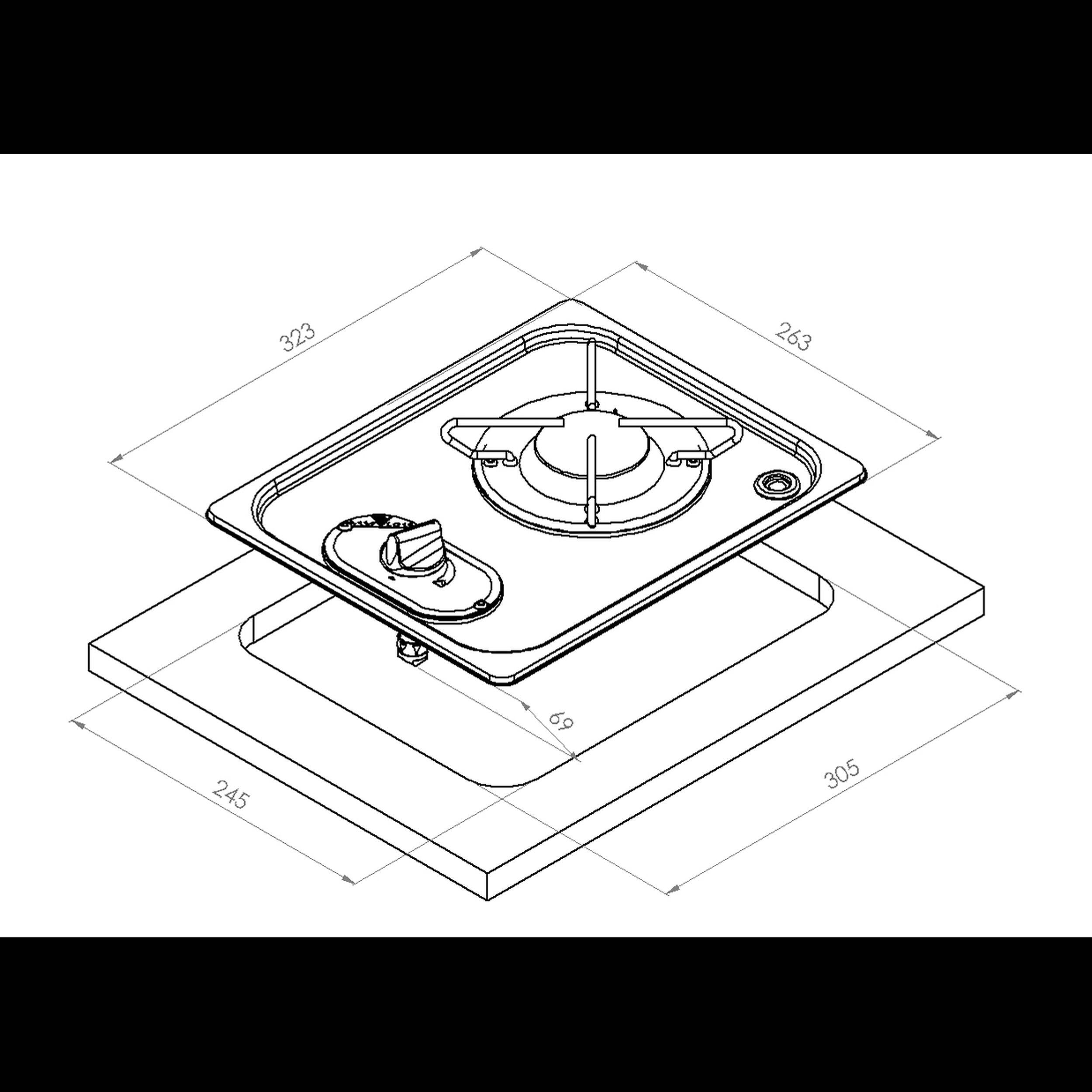 Réchaud à gaz encastrable en acier inoxydable 1 feu, 263×323, 180W, avec thermocouple pour une sécurité maximale.