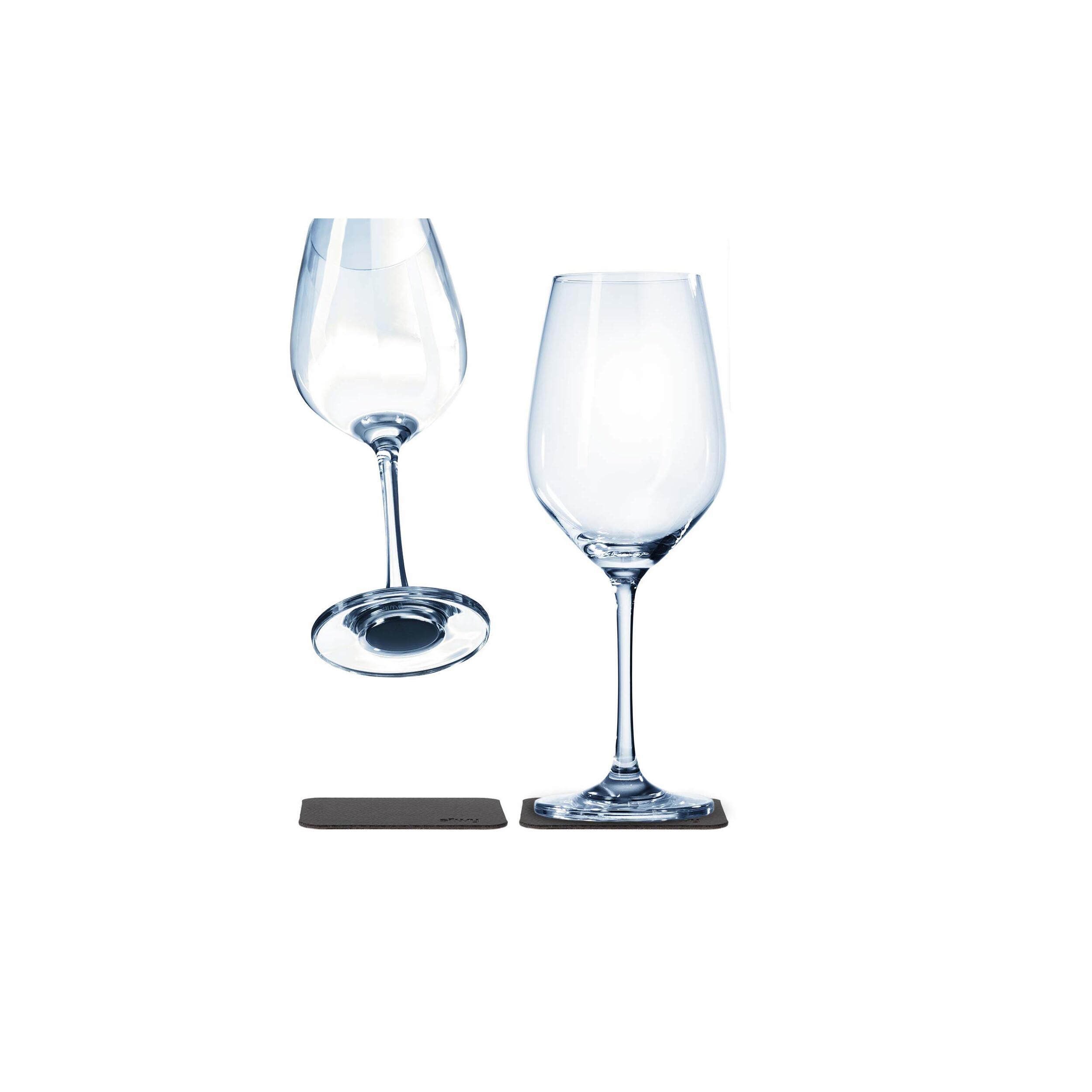 La marque Silwy propose ce lot de verres à vin en cristal avec aimants intégrés, accompagné de ses 2 dessous de verre antidérapants en nano-gel.