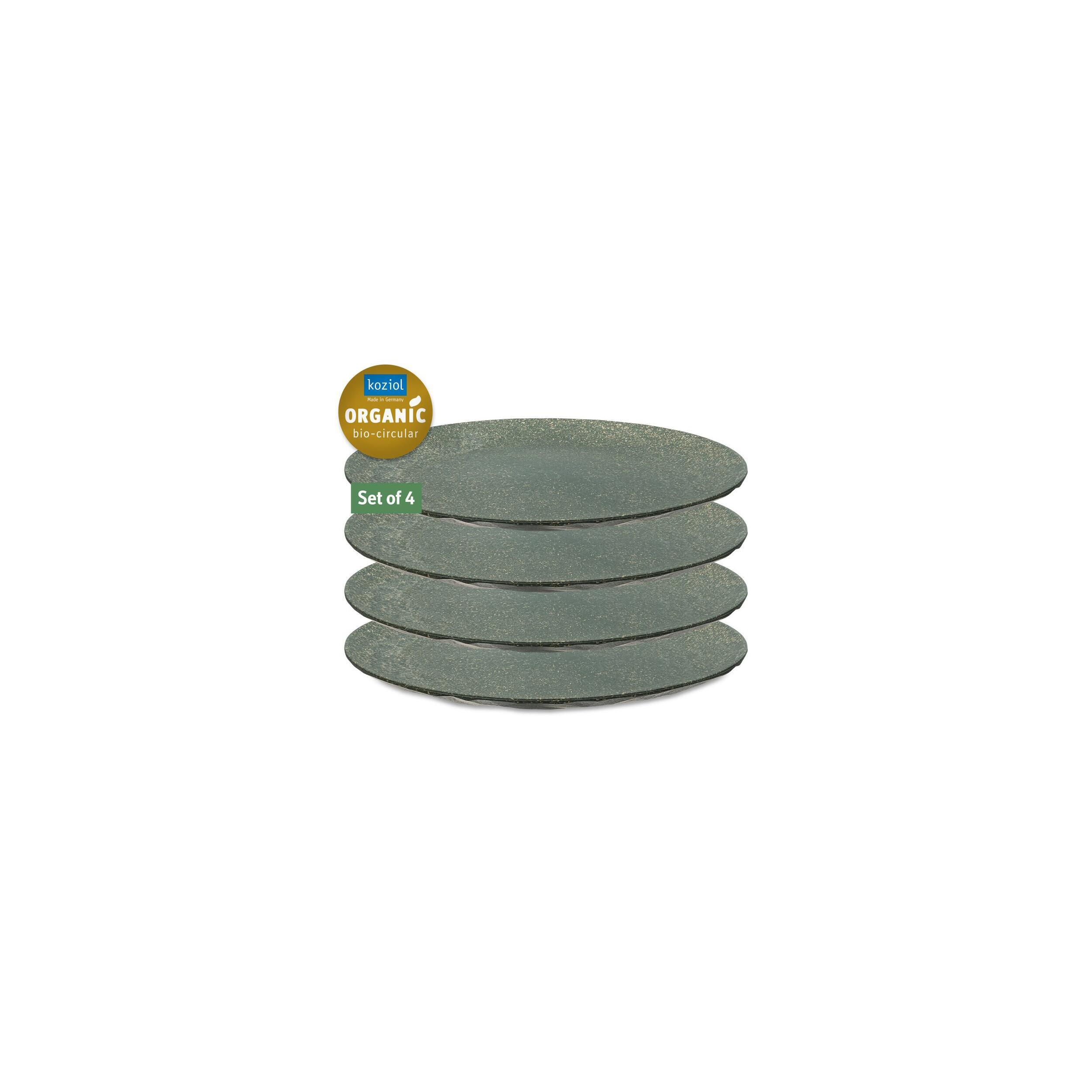 Lot de 4 assiettes plates en matériau innovant 100% naturel : composé uniquement de thermoplastiques et de fibres de bois.