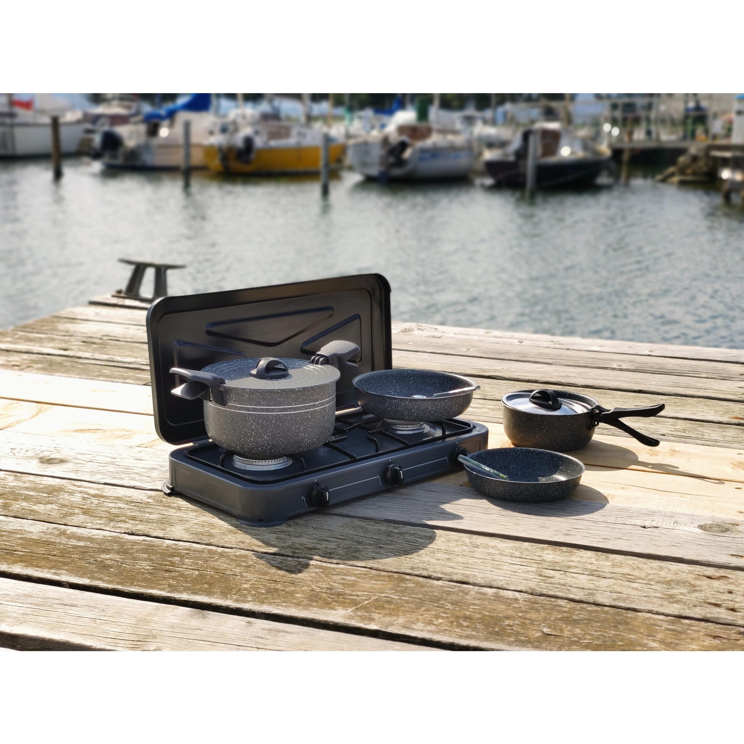 La popote Incasa est idéale pour cuisiner en camping-car, caravane, bateau, randonnée ou bivouac. Compacte et légère, elle se transporte facilement et s’adapte à tous les petits espaces.
