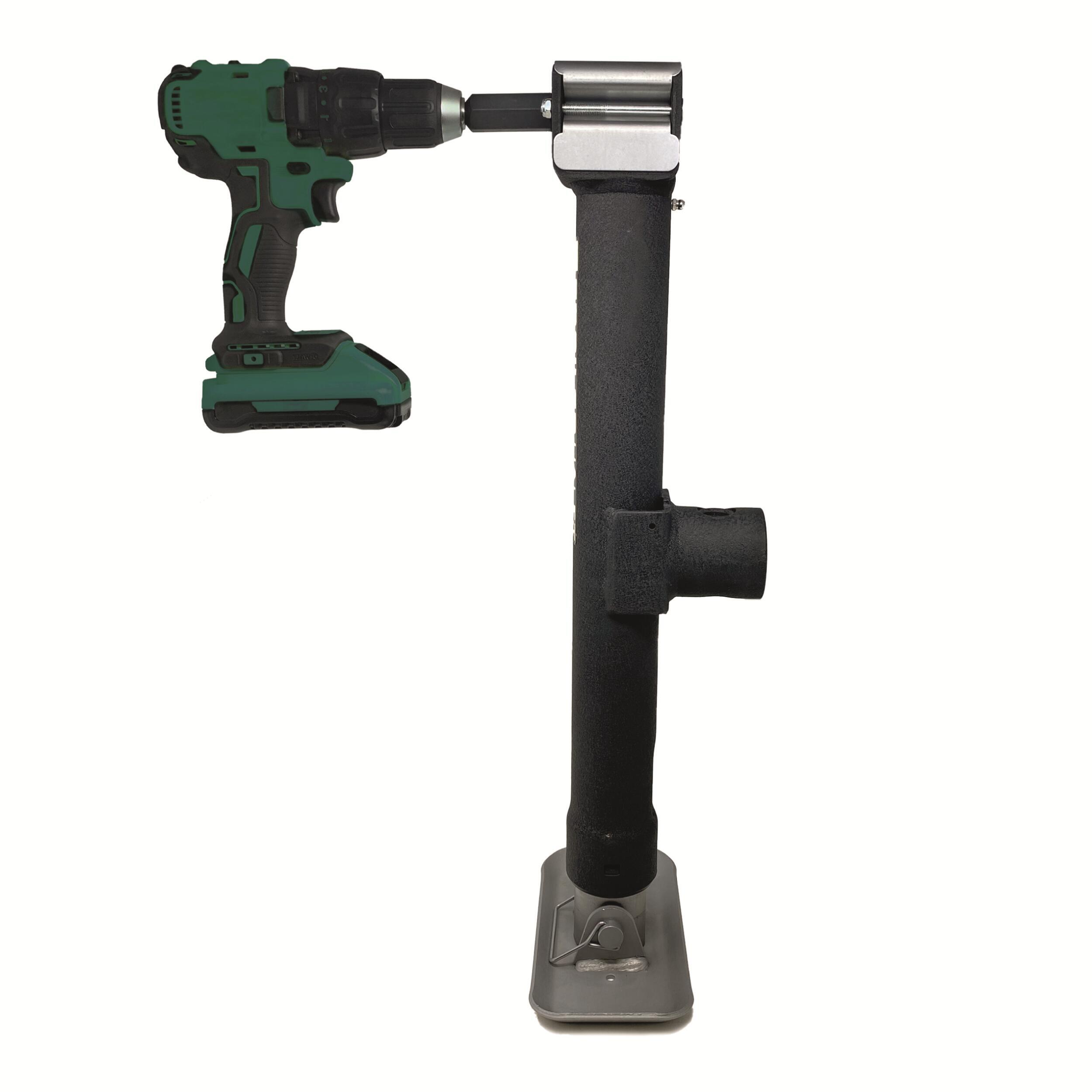 Compact, pliable et polyvalent, le cric manuel Trailer Valet manœuvre remorques et camping-cars avec efficacité, que ce soit à la main ou à l’aide d’une perceuse électrique.