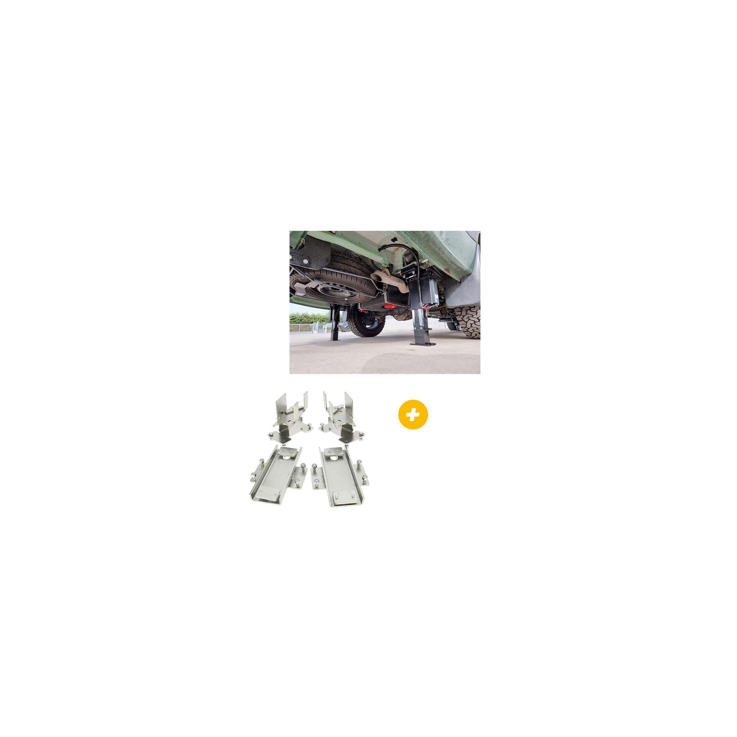 Afin d'assurer et renforcer la rigidité du châssis sur la partie arrière, l'ajout d'un kit d'adaptateurs spécifique au modèle du véhicule (non inclus) contenant les interfaces vérins/châssis et une barre de renfort de rigidité pour l'arrière est indispensable.